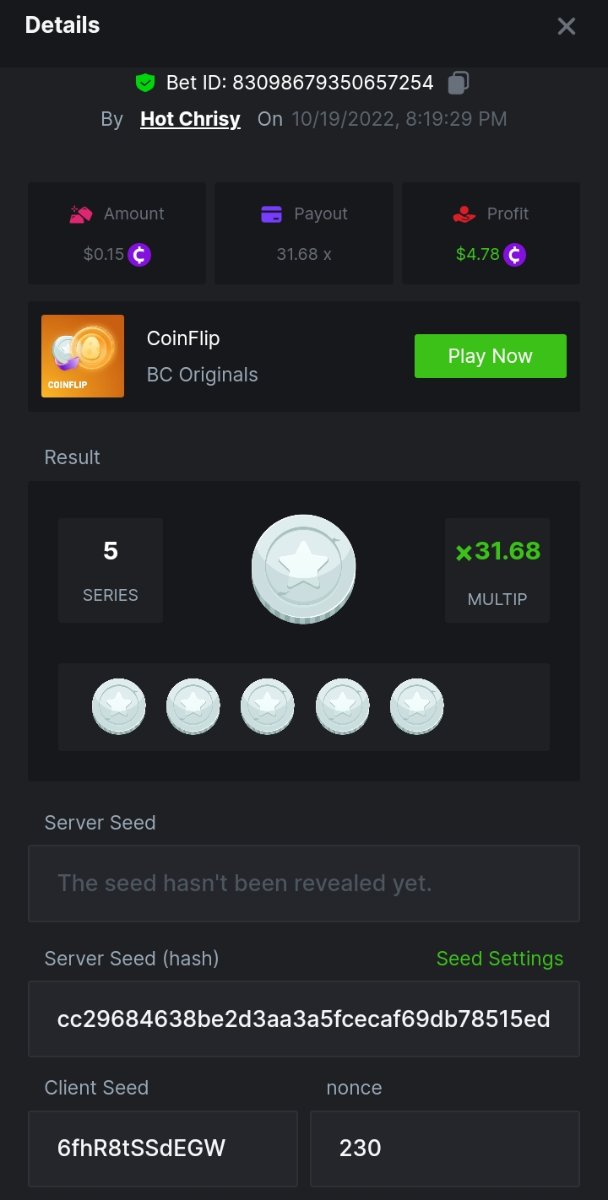 1. Bounty: https://bc.game/#/sd/10UDBYYTH55TLF I put in $.15bcd not .$14 guess it's market fluctuations. https://bc.game/#/sd/10UDBKHRACQMTV