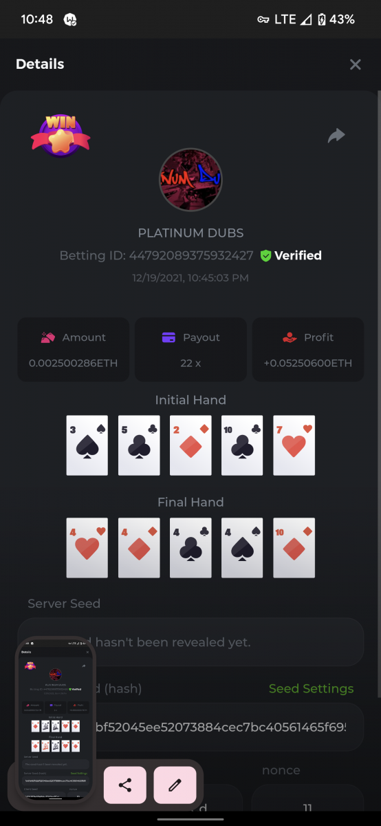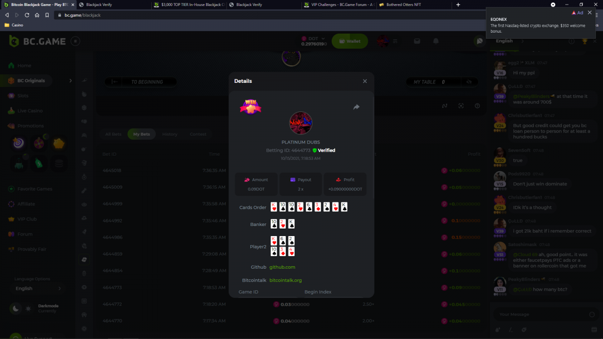 7. Betting ID: 4644773 https://bcgame-project.github.io/bcgame-blackjack/?s=W5kvdHw%2BkSD4o15UOBhdivpb8LHW5jLle1b1r7q1OlE1uV8pHOYquXXrEKFiawcOY3O83qUurpxO%2F2VHxgCKVChI5al%2F%2BJKuPdenqqKJhcjO%2FxuXWkfl%2F%2FF1ugH9sKgNsifeAVMr6N43asyHuotgRwRf29URmPCddKhV6fw7wNc%3D&i=222078&range=205,214