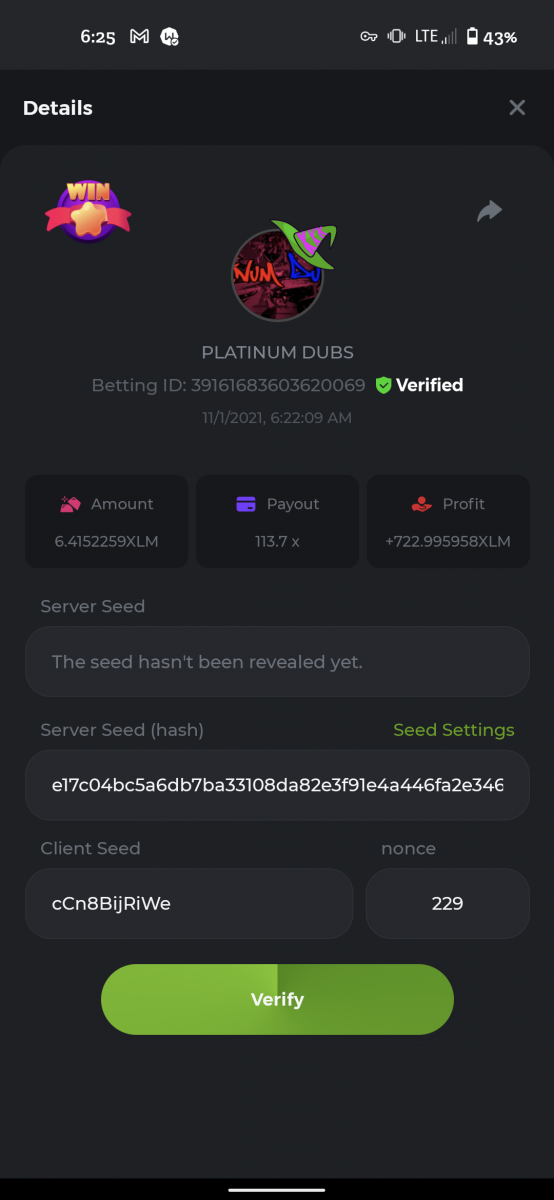 6. Betting ID: 39744648104640636 it would have been alot higher but my phone rotated and I lost 6 free spins they need to fix that shit