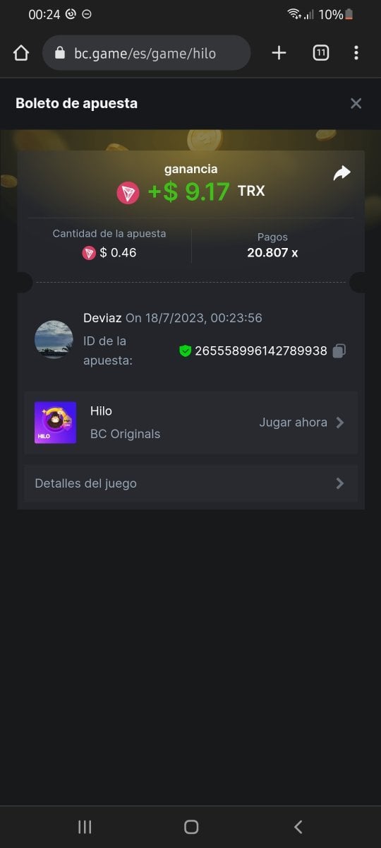 2. Android, Chrome, difícil que se vea los saldos
