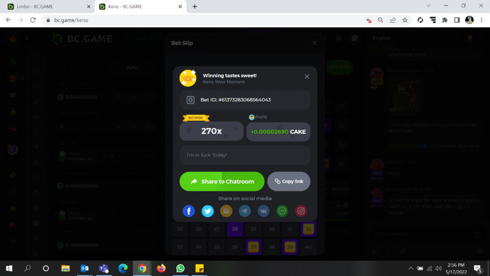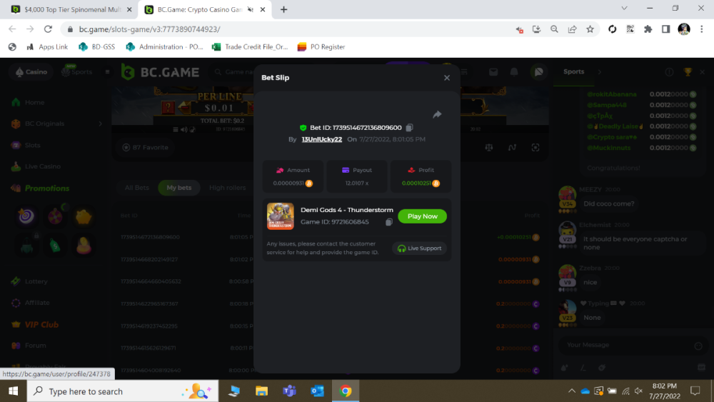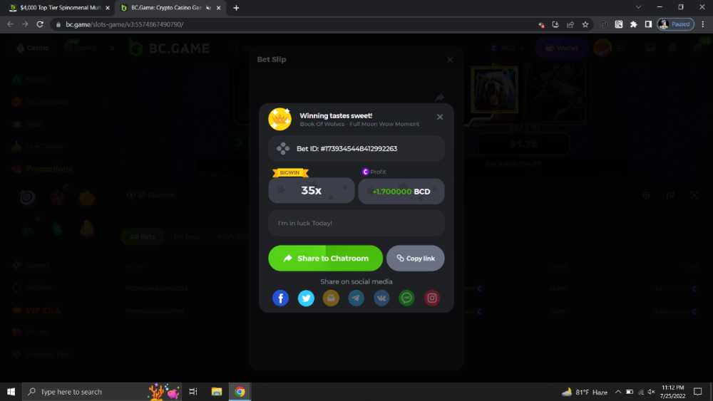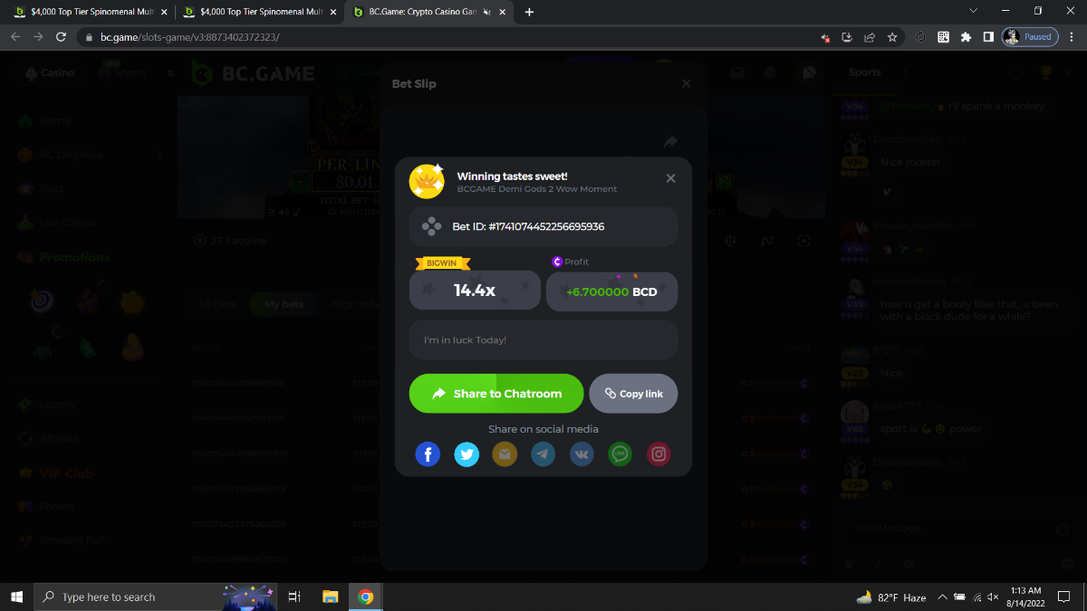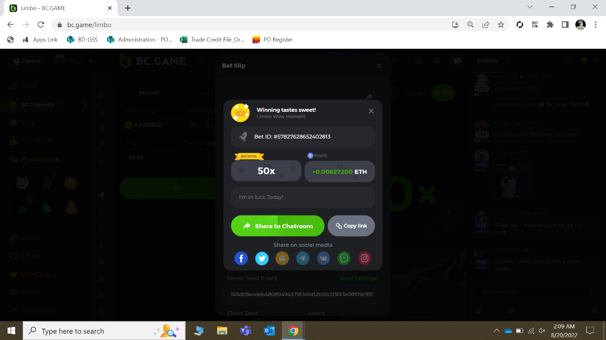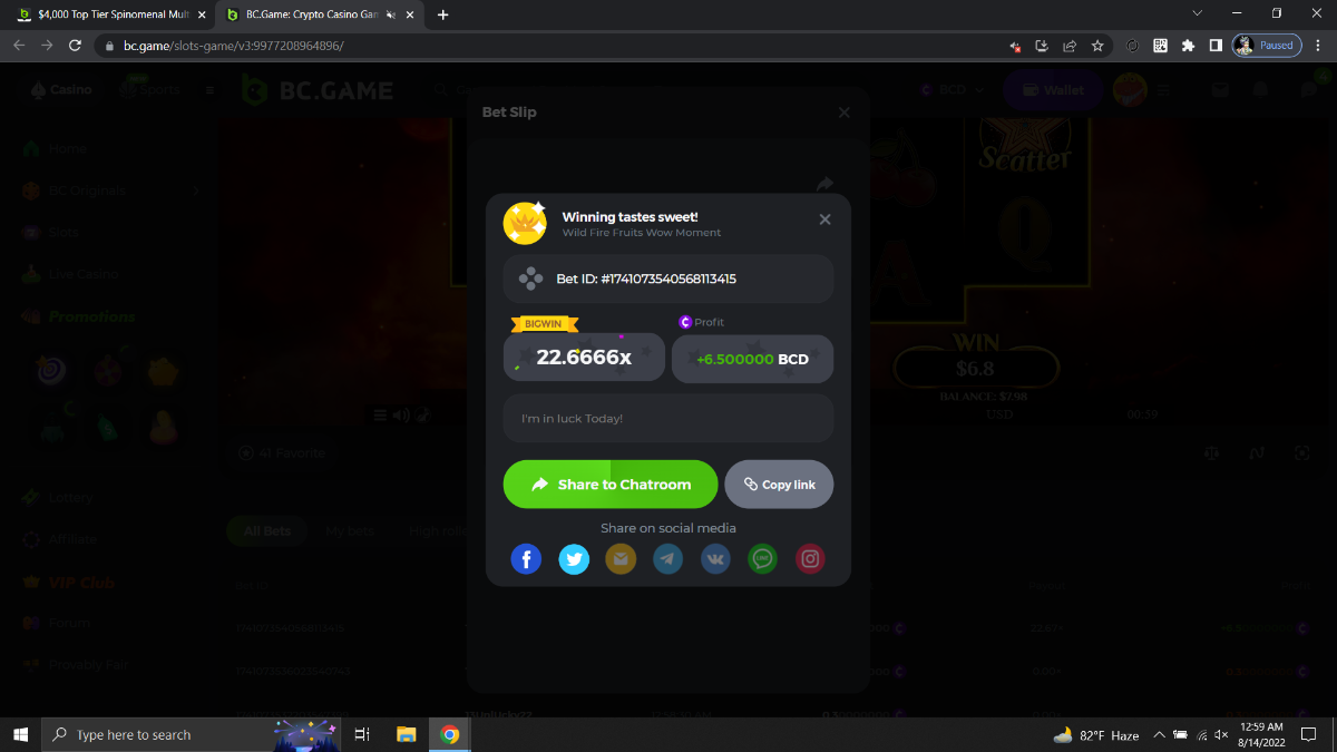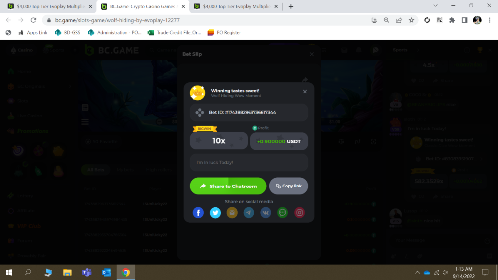 https://bc.game/sd/?sd=10KCTT2DWVITQR The bet amount was .00001 equivalent but because of decreasing coin value it shows .00000964