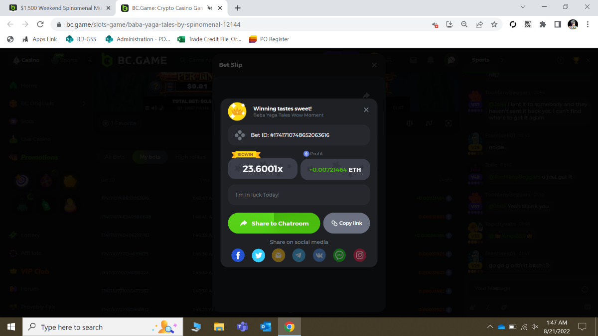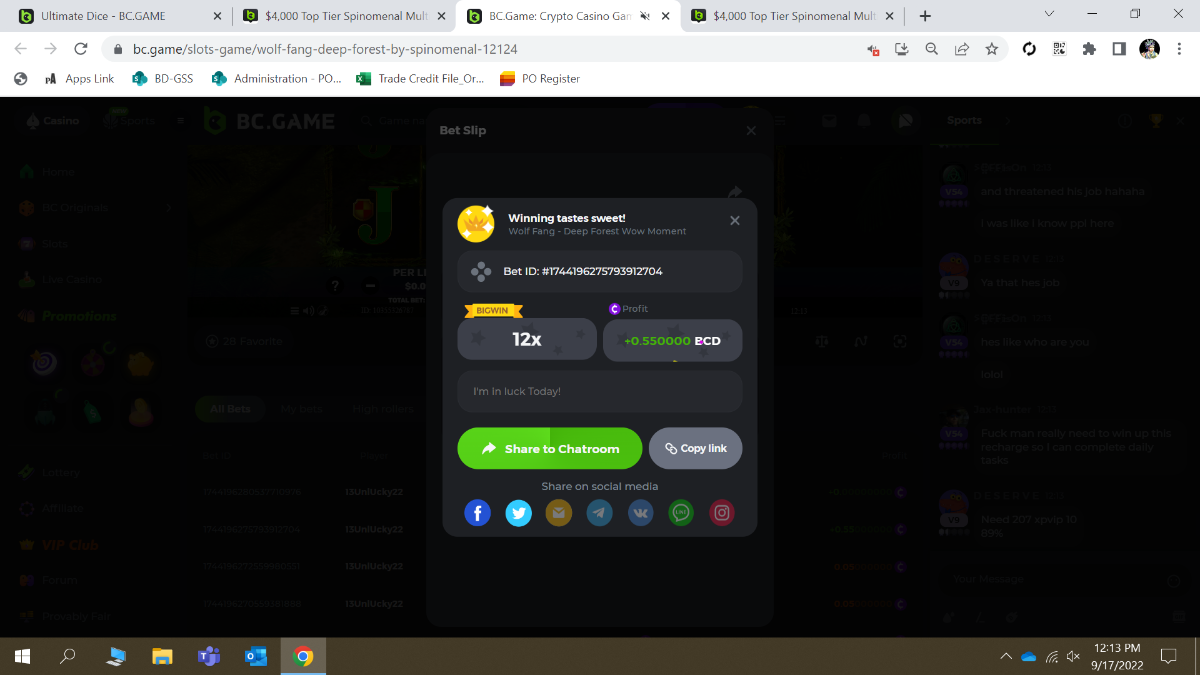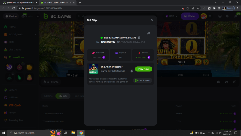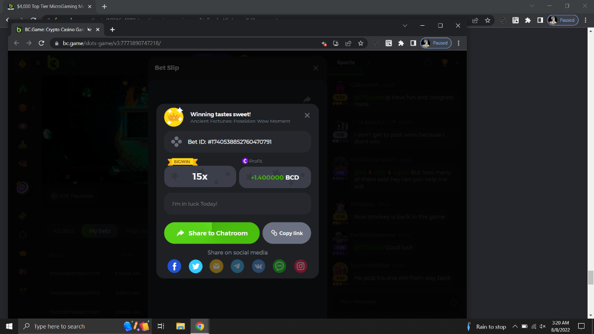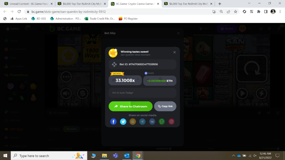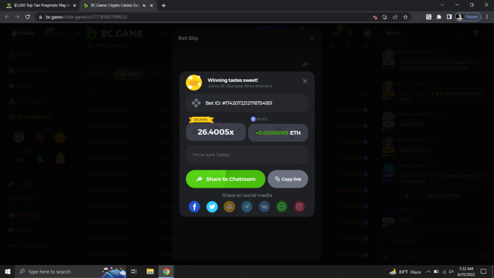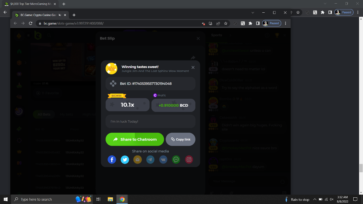 https://bc.game/sd/?sd=10KCTT2DWVITQR The bet amount was .00001 equivalent but because of decreasing coin value it shows .00000964