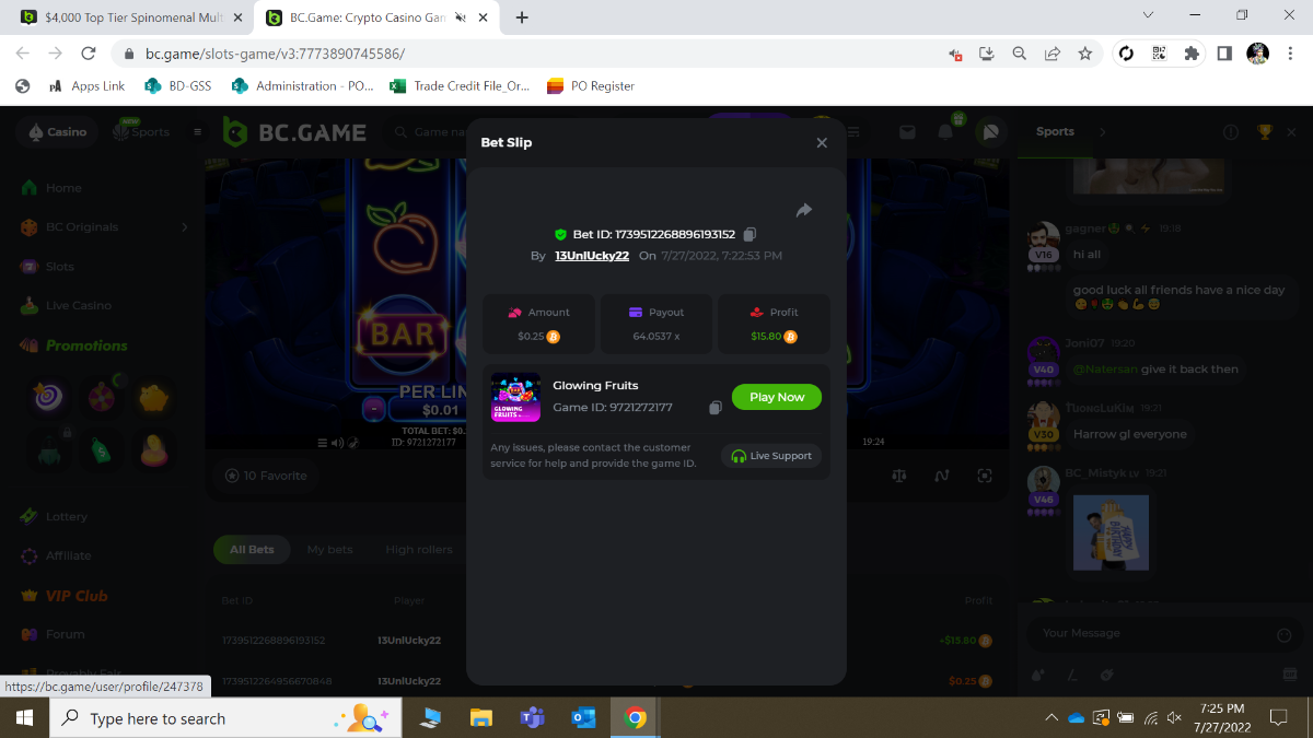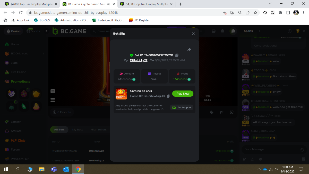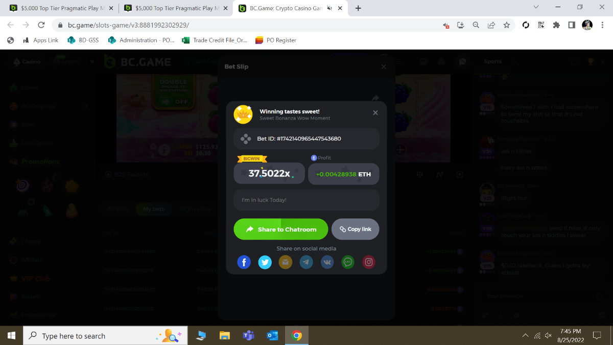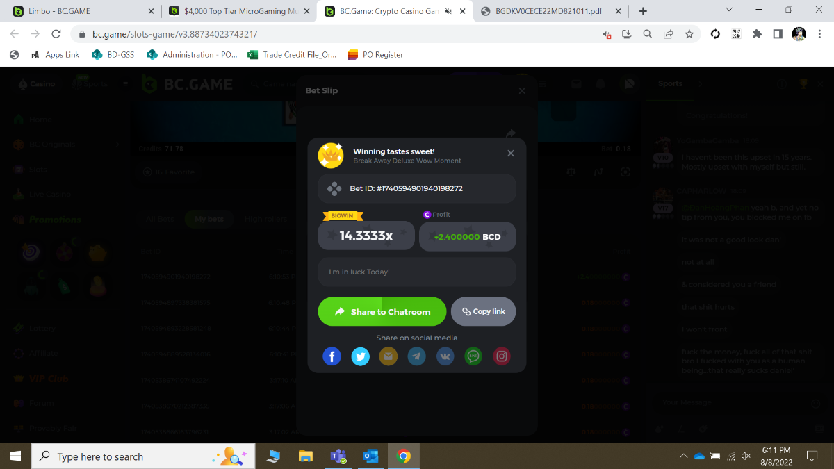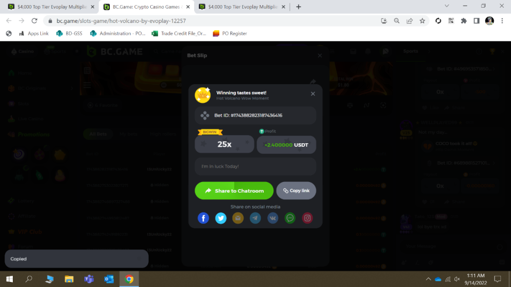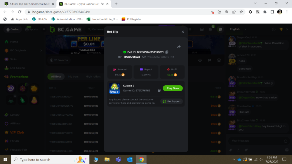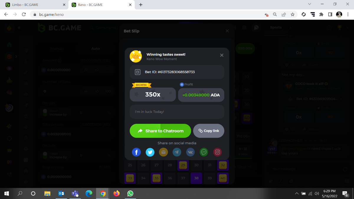 https://bc.game/sd/?sd=10KCTT2DWVITQR The bet amount was .00001 equivalent but because of decreasing coin value it shows .00000964