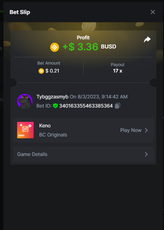17x - https://bcgame.top/#/sd/11F6E2IE9C9KB7