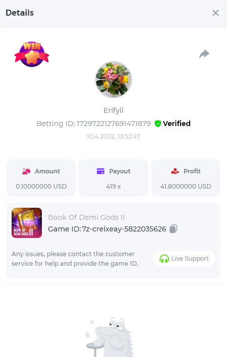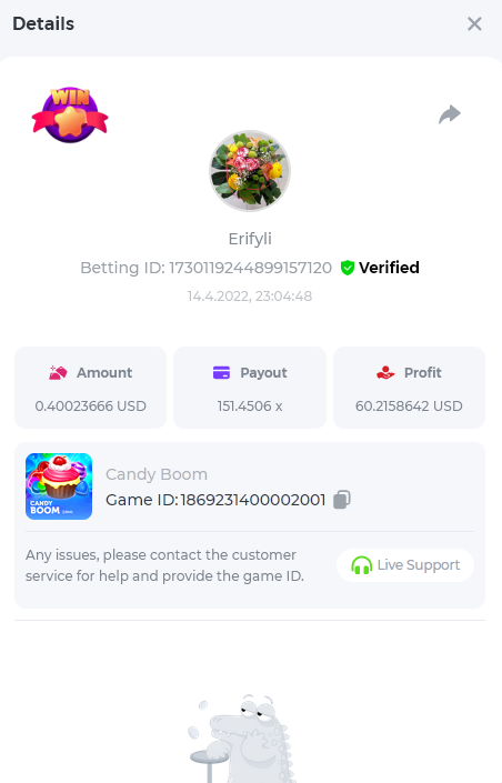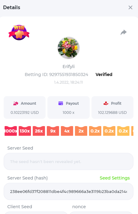 Betting ID: 1725030010104246400 534.60x Betting ID: 1725032592233159943 154.35x Betting ID: 1725487027814036096 325.45x Betting ID: 1725191868935935751 84x