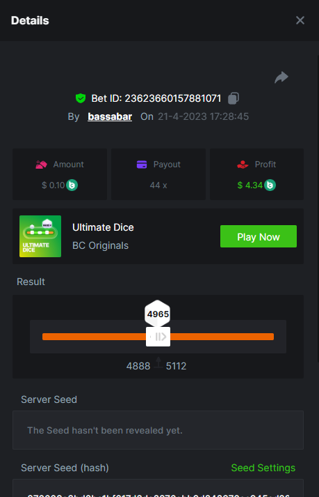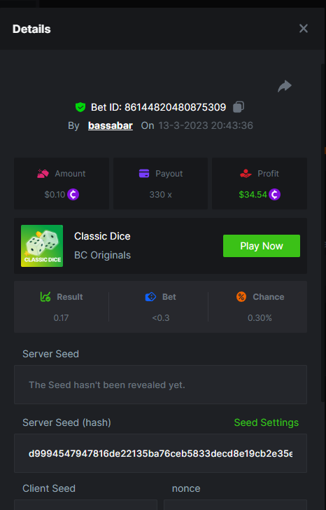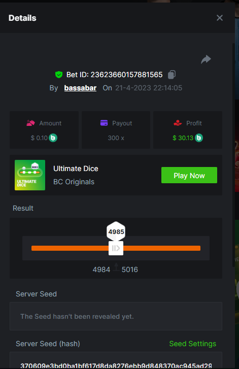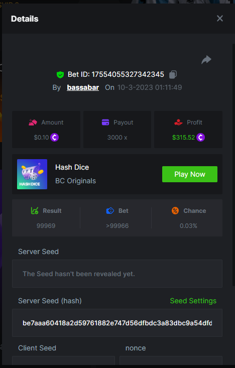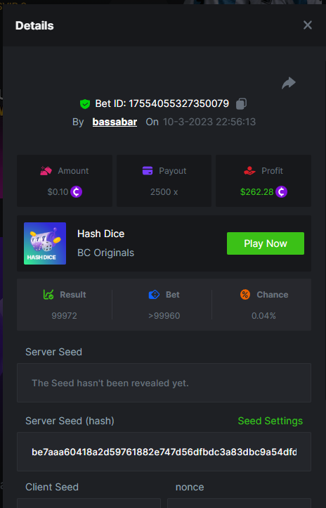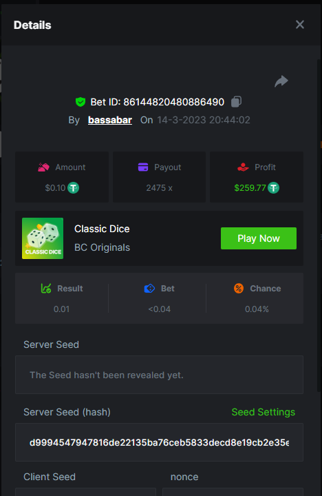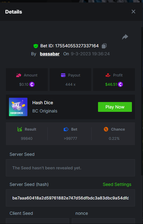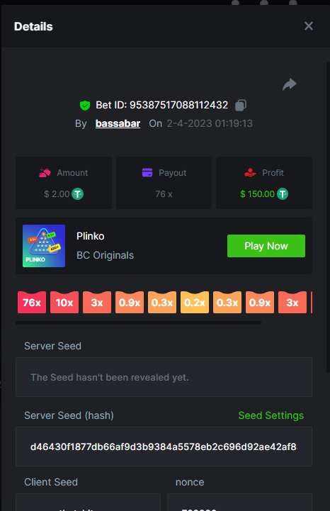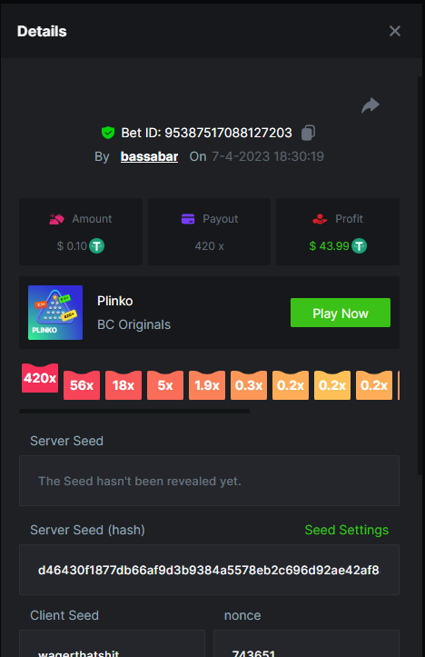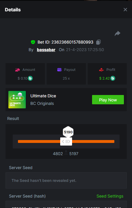 Highest multiplier: 486.213x Bounty (AAA or KKK): Yes Multiplier: 486.213x https://bc.game/#/sd/115W66QQU4A80J Bounty(KKK): https://bc.game/#/sd/115VAVB5LCGD1V -