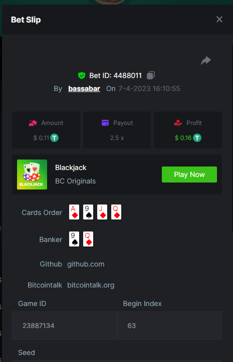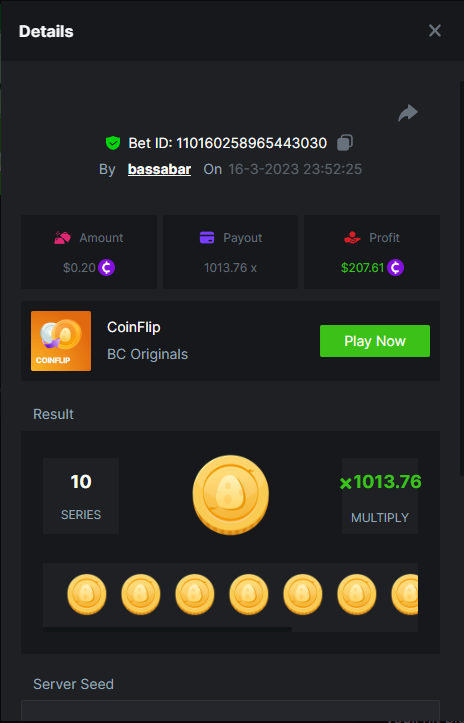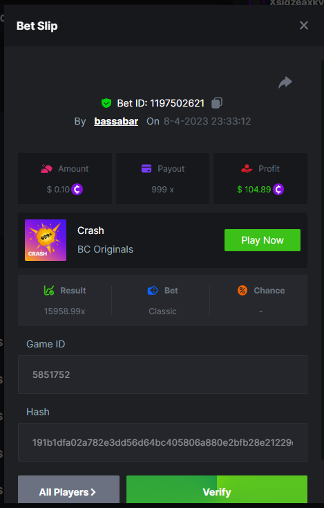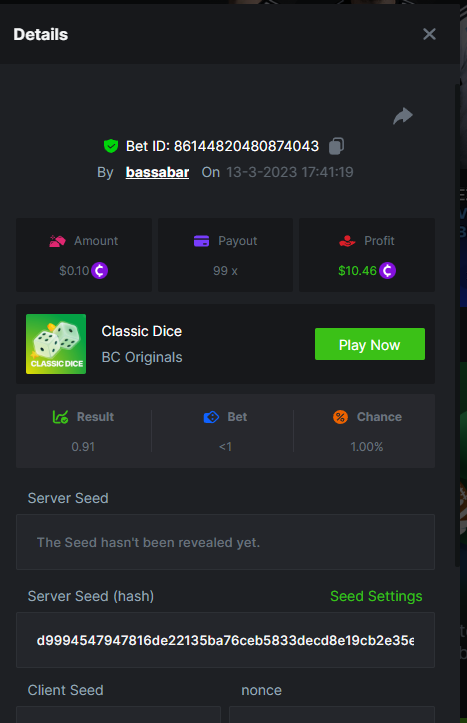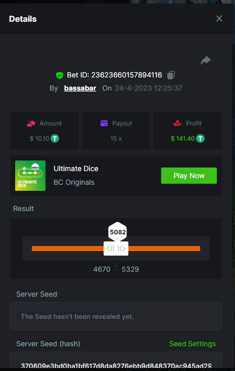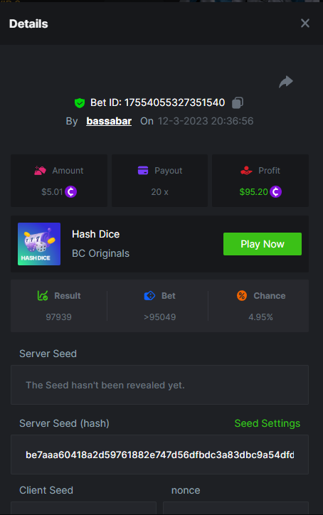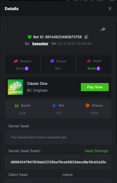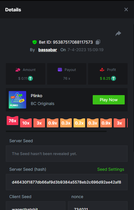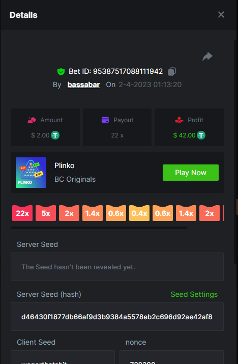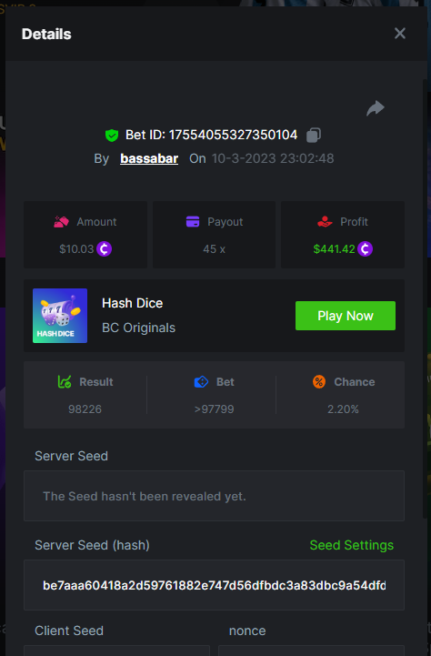 Highest multiplier: 486.213x Bounty (AAA or KKK): Yes Multiplier: 486.213x https://bc.game/#/sd/115W66QQU4A80J Bounty(KKK): https://bc.game/#/sd/115VAVB5LCGD1V -