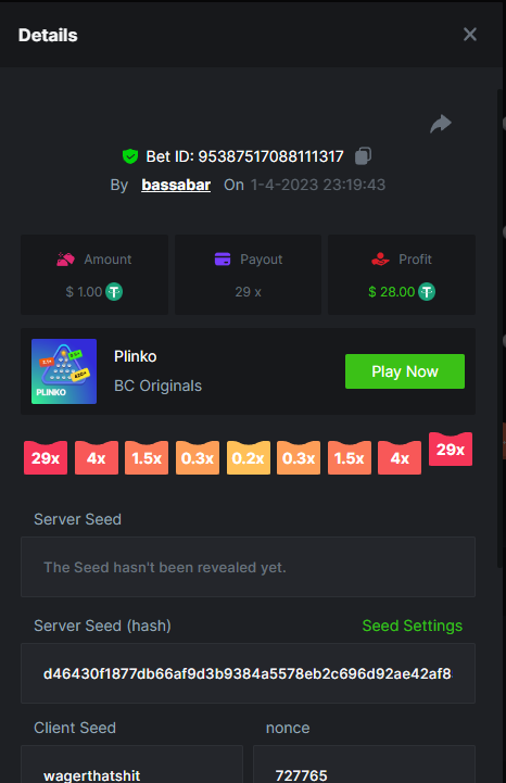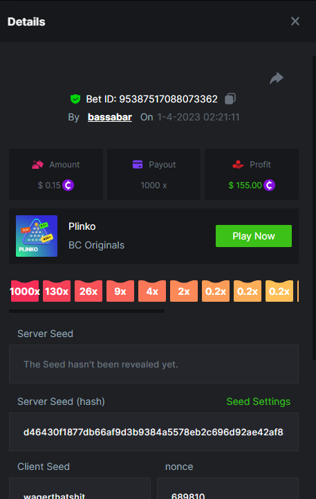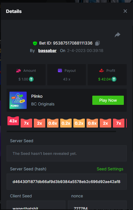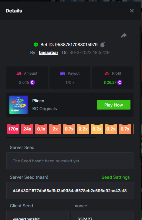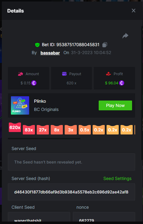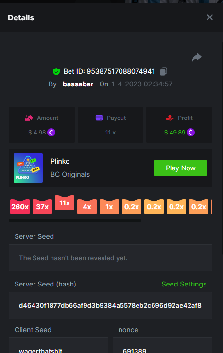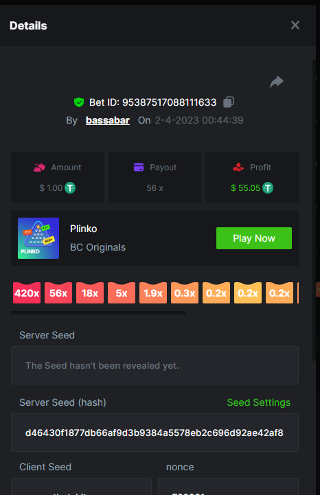 Total points: 25/25 Bounty(825x or higher): Yes 5x https://bc.game/#/sd/115JDARVMLSW0J 15x https://bc.game/#/sd/115JD4V0ELWAOJ 25x https://bc.game/#/sd/115JD8WI69M9LF 33x https://bc.game/#/sd/115JDJ05JANVV7 44x https://bc.game/#/sd/115D7BUE1RF577 55x https://bc.game/#/sd/115D7GGP2FSIZ7 66x https://bc.game/#/sd/115DA0GWZU19UB 75x https://bc.game/#/sd/115DA1GLUW7ZF7 90x https://bc.game/#/sd/115DA5ONUUC45V 99x https://bc.game/#/sd/115DDSY8UF6Z9V 100x https://bc.game/#/sd/115DDWX4L0JOK3 150x https://bc.game/#/sd/115DE4LVRWAGIB 180x https://bc.game/#/sd/115DEGZDGO1RMB 220x https://bc.game/#/sd/115DEM5ABVYDXV 300x https://bc.game/#/sd/115DP0NO0E94PF 330x https://bc.game/#/sd/115DP4KRE4X3BN 396x https://bc.game/#/sd/115DPARTRVEFPV 450x https://bc.game/#/sd/115DPGNPMZ3F9V 550x https://bc.game/#/sd/115DPKN7FU5DLF 825x (Bounty too) https://bc.game/#/sd/115E3ENAHI0KK3 900x https://bc.game/#/sd/115E3RFGBIOLQR 1100x https://bc.game/#/sd/115E4707JNE2HF 2475x https://bc.game/#/sd/115G6C4Y9UBEAB 3300x https://bc.game/#/sd/115JBVQ9N283RN 4950x https://bc.game/#/sd/115JD0HB2SWD1V -