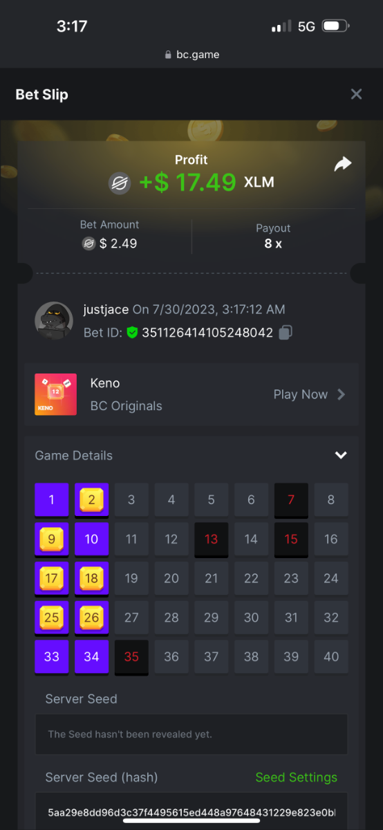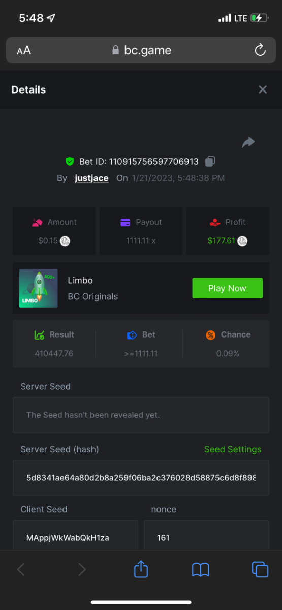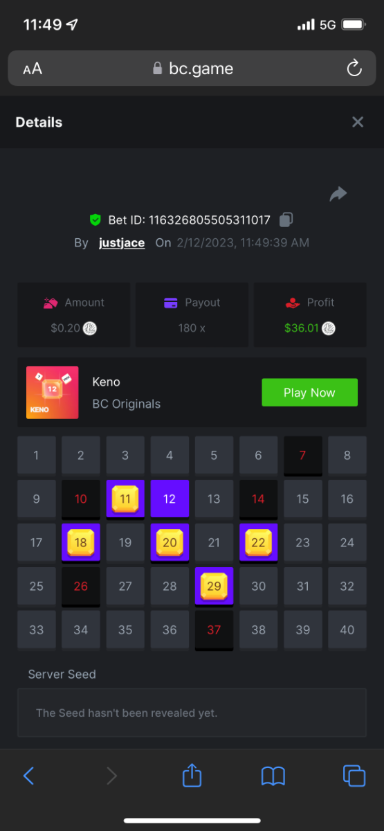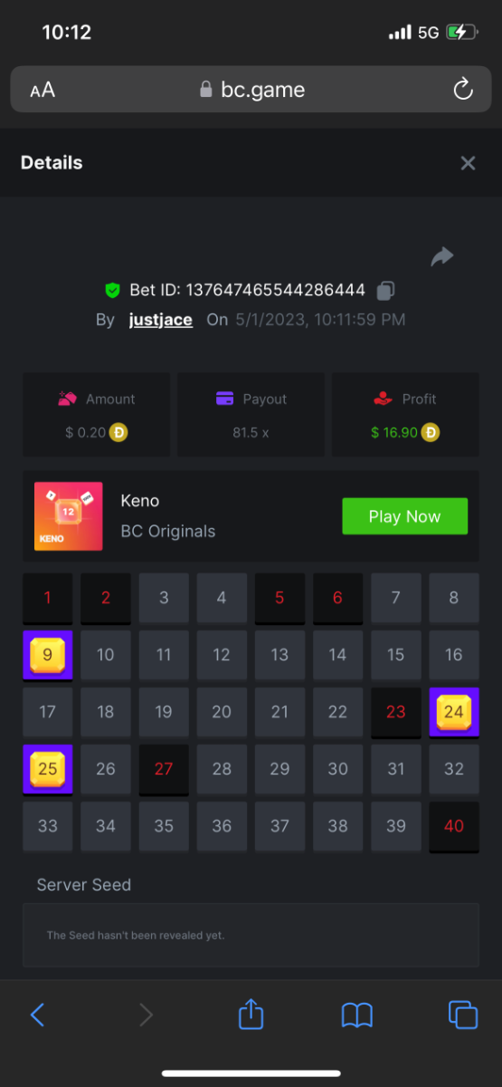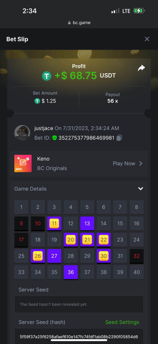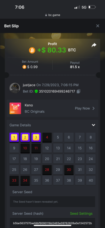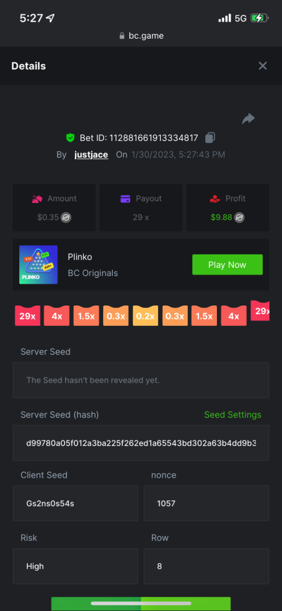 5.1x: https://bc.game/#/sd/118ROTNAR84R9V 8x: https://bc.game/#/sd/118RQVPP8BQYAB 11x: https://bc.game/#/sd/118RPW4RVZQVPV 56x: https://bc.game/#/sd/118RRFI8VER3TF 81.5x: https://bc.game/#/sd/118RS6P6T5KLJN 100x: https://bc.game/#/sd/118U0YISWJW5CJ