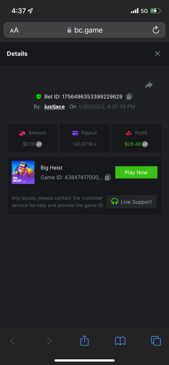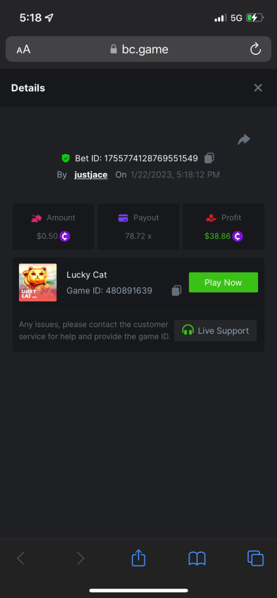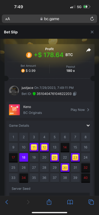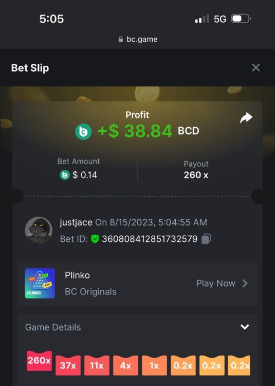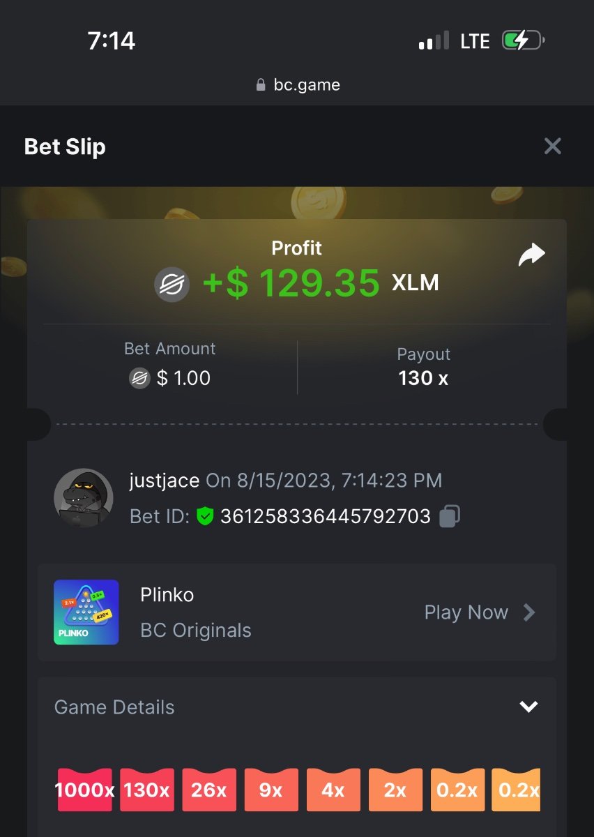 5.1x : https://bc.game/#/sd/1138ZN41M803RN 11x: https://bc.game/#/sd/1138ZWV6Q4I0IB 100x: https://bc.game/#/sd/113DU4H2V30MQB 180x: https://bc.game/#/sd/113DUHFTXSW4K3 63x: https://bc.game/#/sd/113E3M85OJT1XV -