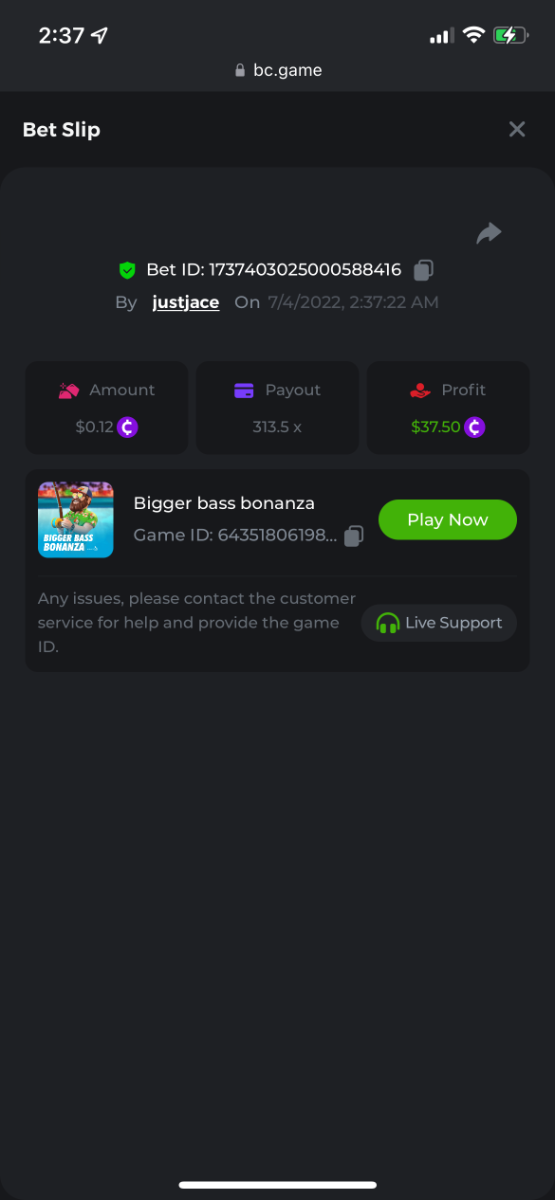 BryceDevine Posted July 4, 2022 Share Posted July 4, 2022 (edited) Bigger Bass Bonanza 26x https://bc.game/sd/?sd=10NZDG137Z7YMR Big Bass Bonanza 68.5x https://bc.game/sd/?sd=10NZE6GNAL8T8Z Edited July 4, 2022 by BryceDevine Update higher win Link to comment Share on other sites More sharing options...