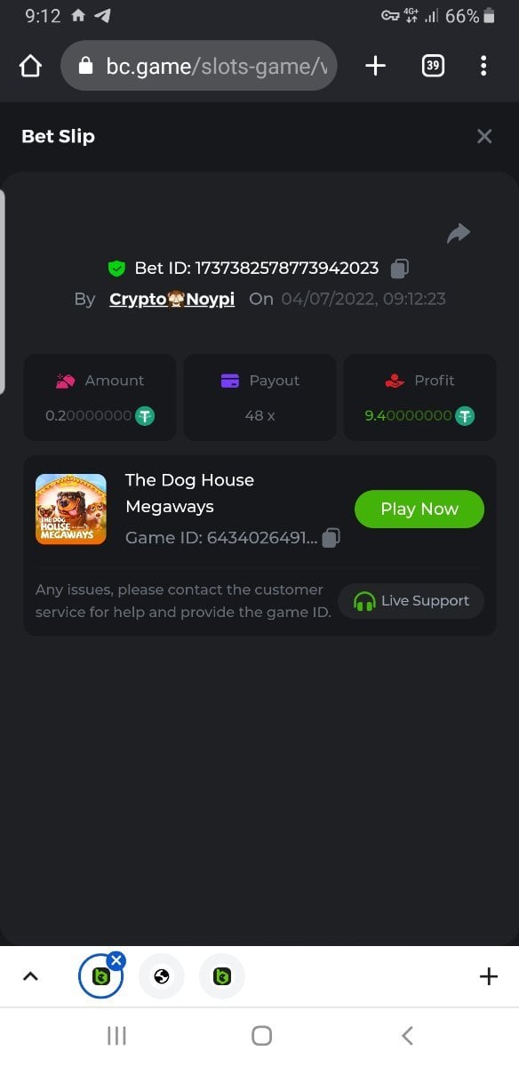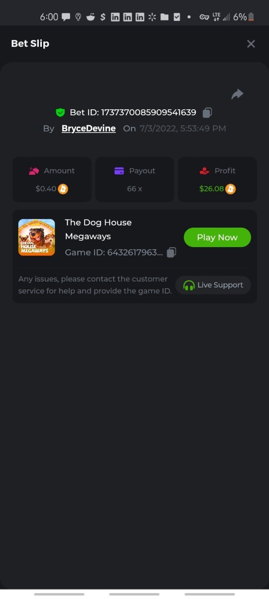 BryceDevine Posted July 3, 2022 Share Posted July 3, 2022 The Doghouse Megaways 66x https://bc.game/sd/?sd=10NZ0LSFE168LV Wild West Gold Megaways 10.6x https://bc.game/sd/?sd=10NZ1S4O4S6IHF @Niobium Is this acceptable to have multiple games on one reply? Or do I need to separate? Link to comment Share on other sites More sharing options...