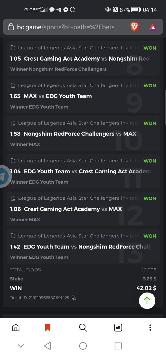 Moderator Mat Posted September 11, 2022 Moderator Share Posted September 11, 2022 $250 BC.GAME SPORTS PARLAYS CHALLENGES #21 Start: 12, Sep 00:00 UTC Ends: 18, Sep 23:59 UTC Hello, ladies and gentleman! Sports Parlay Challenges #21! With a prize pool of $250, the Top 7 takes home a grand prize, and the remaining $60 will be split among all other entrants! What is the challenge? Win a multi-bet with at least x4 by betting on at least 4 matches (all sports) All bet slips must be posted open! Any closed published bet slip will be disregarded! The ODDS for each game will be added up and counted as total points. Voided, half-loss, and half-win bets aren't eligible for the challenge! Cashed-out bets aren’t eligible for the challenge. Using the same odds on a single bet slip isn't allowed Providing the bet link isn’t mandatory Minimum VIP No Minimum VIP Level Minimum payment Multiplier minimum 4x, however, only the top 7 winning parlay multipliers will win the grand prize! Minimum bet size Equivalent to U$$1 Eligible currencies All cryptocurrencies are eligible (except JB) Rewards available 1st place.......$70 2nd place.....$50 3rd Place...... $30 4th Place...... $20 5th Place...... $10 6th Place...... $5 7th Place...... $5 The remaining $60 will be split among all other participants who meet the minimum requirements and minimum stake. How to enter: To participate, post your Ticket ID, along with your Parlay link, as a reply to this thread as follows: Link bet: https://bc.game/sports/?bt-path=%2F%3FbtBookingCode%3D561A9D1 + Ticket ID 2126602890796736992 Along with the screenshot of your accumulated ticket. See how to get your sports bet link below! https://imgur.com/a/BRSyxVE Ticket ID 2126602890796736992 If a selection results in a void or push, the bet will remain eligible as long as it remains equal to or greater than a triple bet and meets the odds requirements. Bets withdrawn will not be counted. Please combine all your hits into a SINGLE post. Edit your existing post to get additional hits, don't create a new post. Bets must be placed during the time window specified above. This thread will automatically lock when the time period ends. One (1) entry per family. If someone finds multiple prizes, they will be disqualified from the challenge as well as all future challenges. Failure to follow the instructions will result in the cancellation of your submission. By entering this challenge, you acknowledge that BC.Game has final decision rights over results and placement. Link to comment Share on other sites More sharing options...