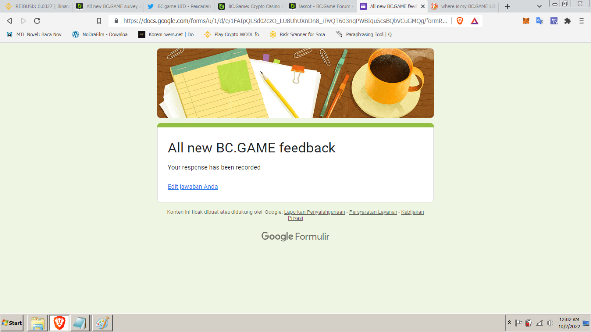 jigi47 Posted October 2, 2022 Share Posted October 2, 2022 On 9/30/2022 at 6:59 AM, BCGame_Bil said: Hola BC.GAME fam, We have constantly been improving our services from your feedback. We upgraded our main site after receiving feedback from our community. We also introduced simply & friendly UI to ensure our brand is always make things simple for everyone. In this feedback, we look forward to knowing the feedback from BC.GAME fam, any live bug / useful feedback / user experience are happy to submit. (Language = English only) Giveaway: $5 for every useful feedback , live bug , great sharing of user experience. Eligible for all VIP 1 above users. Maximum up to $500 bcd for claim Please submit your journey by click HERE Incase you need a example for reference : Website URL ( https://bc.game ) Device & System ( iPhone 13pro , IOS 16 )(Samsung & Android 11) Feedback / Live bug / User experience. ( Unable open sponsorship page ) Journey ( Safari web browser open the page will show 404 error, same goes to macOS ) Screenshot ( Not mandatory to provide, but it's better if we have your visual ) Reward will release after 3 working days start from locked time and result will be update with this same post. Link to comment Share on other sites More sharing options...