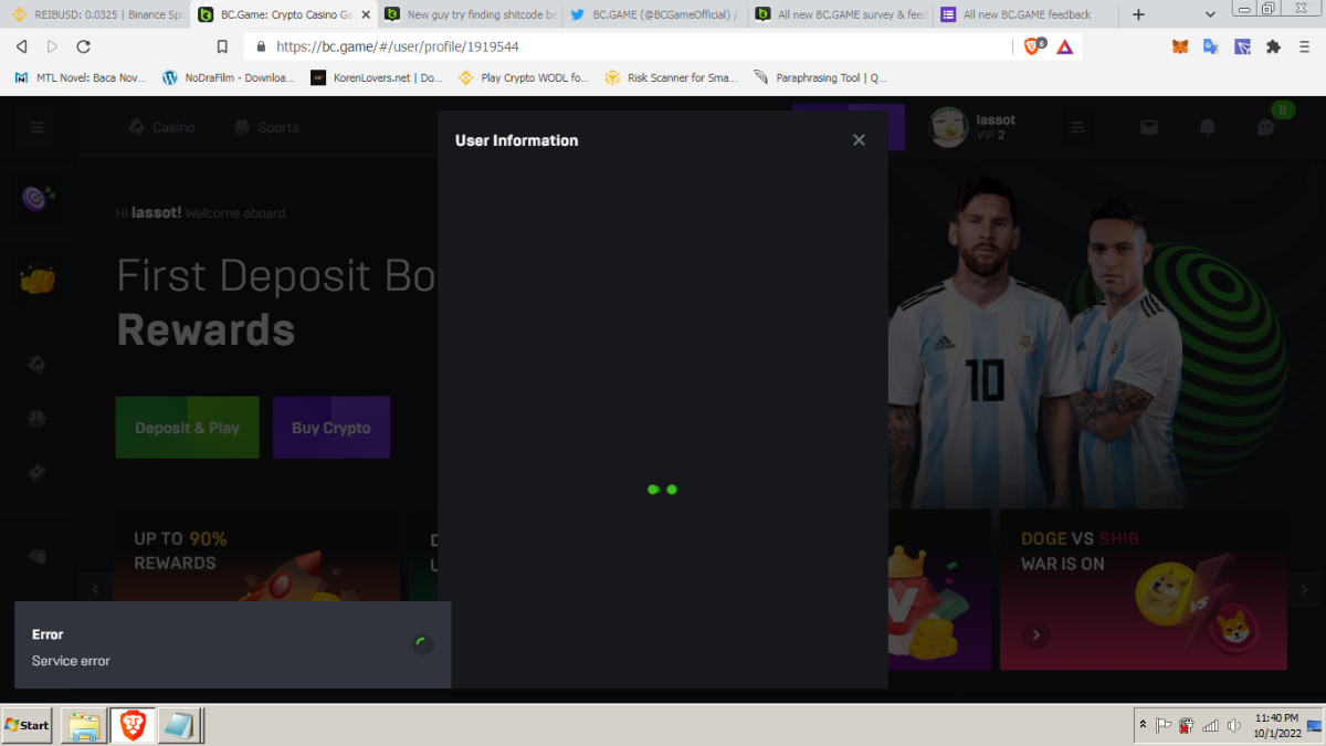 Tall Polito Posted October 2, 2022 Share Posted October 2, 2022 (edited) using https://www.bc.game/and app. user: tall polito user ID:1218198 device: samsung Ao3s and android 11 In: chrome Browser and app 1. hitting the bc button hoping the games will show up but up comes menu 2. recharge and shitcode wrong. 3.love the comments but gives some users chance to beg.see bottom please 10 usd. 4.my bets should be here 5. the wheel not moving when selecting risk. 6.then chrome took and went like desktop and mobile which is awful the bonus page,chat page,in mobile only on chrome went to Brave browser and it was OK. 7.hitting bet because thought I had balance but it just didn't update after losing it all still shows last bett amount left .9.App needs a refresh button bad...o uninstalled the app because of no refresh button but now back to Brave browser but stillshpwdunow in brave Browser cuz had to uninstall app because app Edited October 5, 2022 by Tall Polito added extra things Link to comment Share on other sites More sharing options...
