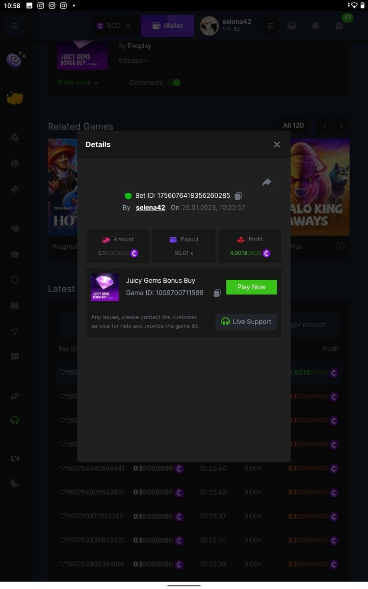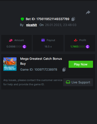 Ciciaq Posted January 26, 2023 Share Posted January 26, 2023 Gold of Sirens Bonus Buy - 57.35x https://bc.game/#/sd/11282WVPKUT8GJ Rueda De Chile Bonus Buy - 58.56x https://bc.game/#/sd/1127WIMREXW55F Hot Volcano Bonus Buy - 100.10x https://bc.game/#/sd/1127ZYTE7EYVIR Mega Greatest Catch Bonus Buy - 120.12x https://bc.game/#/sd/1127XRCR8O1RTF Juicy Gems Bonus Buy - 39.04x https://bc.game/#/sd/1127Y350U9QEQB Hot Triple Sevens Special - 106.11x https://bc.game/#/sd/1127YKK7NOA4NN Inner Fire Bonus Buy - 37.24x https://bc.game/#/sd/1127ZOEN4DQCCZ Massive Luck - 77.58x https://bc.game/#/sd/112817H65XPZ4J ========================================================= Bounty - 50x https://bc.game/#/sd/11283HK6V7NAC3 Link to comment Share on other sites More sharing options...