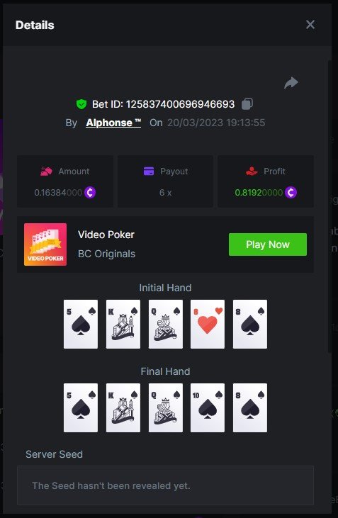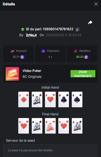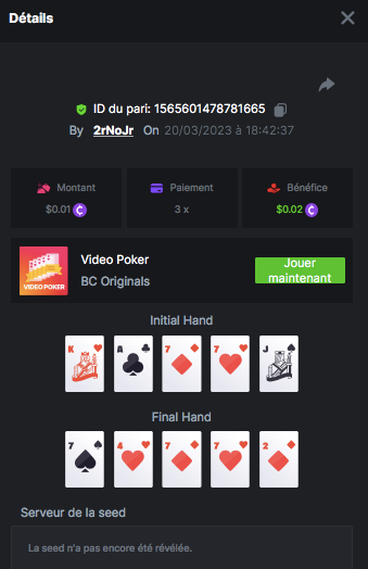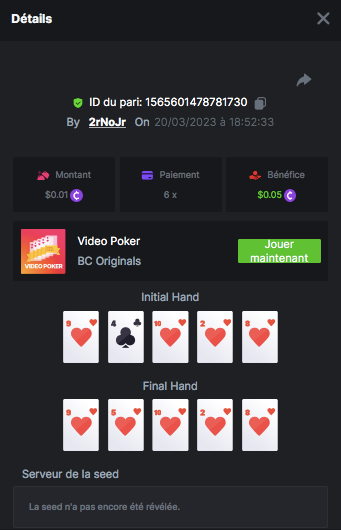 Member AkSyEn03 Posted March 21, 2023 Author Member Share Posted March 21, 2023 (edited) CHALLENGE WEEK VIDEO POKER 1.Zappa 14 BCD 2.2rNoJr 8 BCD 3.Alphonse 4BCD 4.QC-Guyguy75 2 BCD 5.Limbowhore 2 BCD Félicitation à tous   Edited March 21, 2023 by Bc-AksYeN-33 Link to comment Share on other sites More sharing options...