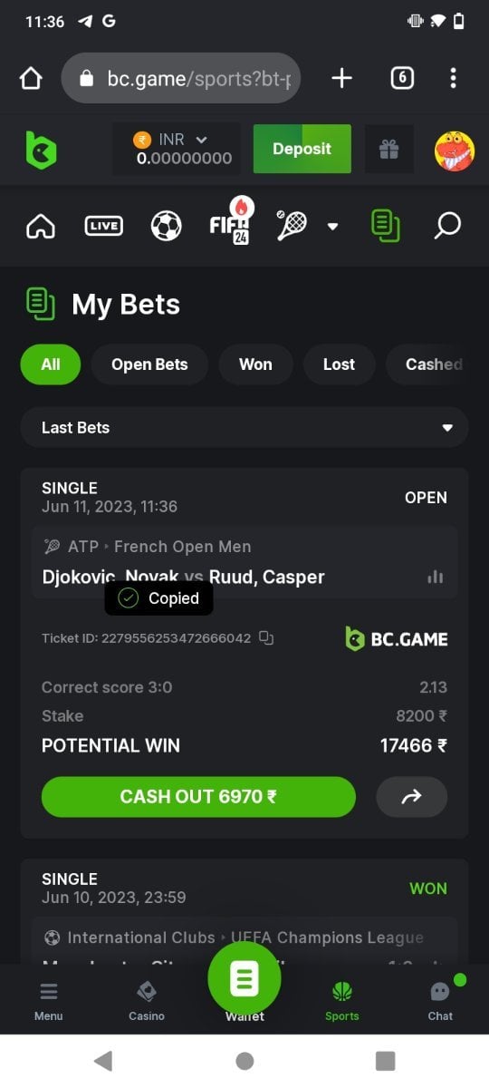 MadBullet Posted June 11, 2023 Share Posted June 11, 2023 Bet ID / Ticket ID : 2279557420852322428 Link to comment Share on other sites More sharing options...