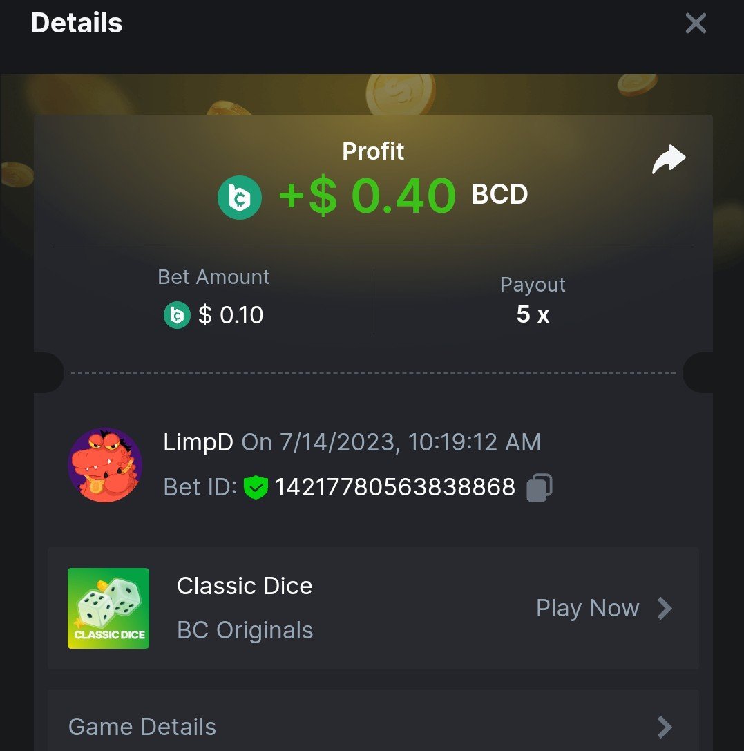 Eigref Posted July 13, 2023 Share Posted July 13, 2023 (edited) lol classic dice went on rigged mode today ate my 15$ hunting just 25x very frustrating, no wonder players before above me have not completed 4 payouts. https://bc.game/#/sd/11DSFPTVN17V2R https://bc.game/#/sd/11DSFSEW57LOGJ https://bc.game/#/sd/11DSI0FJUB94PF https://bc.game/#/sd/11DSITJXM1UJ9V https://bc.game/#/sd/11DSJ4U9OAKLXV https://bc.game/#/sd/11DSJGIBMQXA1F https://bc.game/#/sd/11DSJNQ5D613IR Now trying for another 11$ lolgood thing evoplay slots gave me profit 200x of 0.20$ =40$ Edited July 14, 2023 by Eigref Link to comment Share on other sites More sharing options...