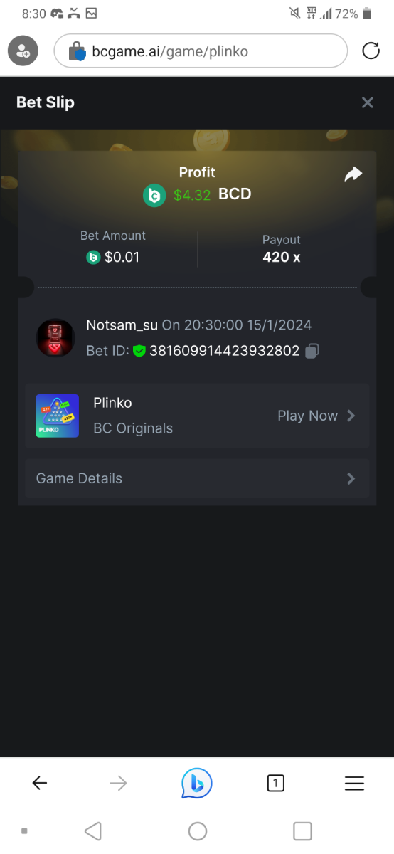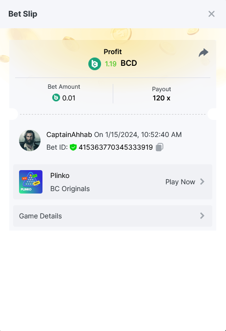 Moderator Giandreas Posted January 15, 2024 Moderator Share Posted January 15, 2024 Read Carefully Before Start To Hunt Forum Daily Challenges #480Hunt : Plinko Win the highest pay out Min Payout : 120x Min Level 10️Duration Starting : Now End time : 23.59 UTC Time How to Join? Make screenshot + paste your bet link + UID or Profile link Any coin, with min bet 0.01 USD is allowed (jb/bb/bcl not allowed)Reward Prizes 1st Place.....$7 BCD 2nd Place.....$5 BCD 3rd Place.....$4 BCD 4th Place.....$3 BCD 5th Place.....$2 BCD 🏵 Winners will be announcing next day after Roll Point! Link to comment Share on other sites More sharing options...