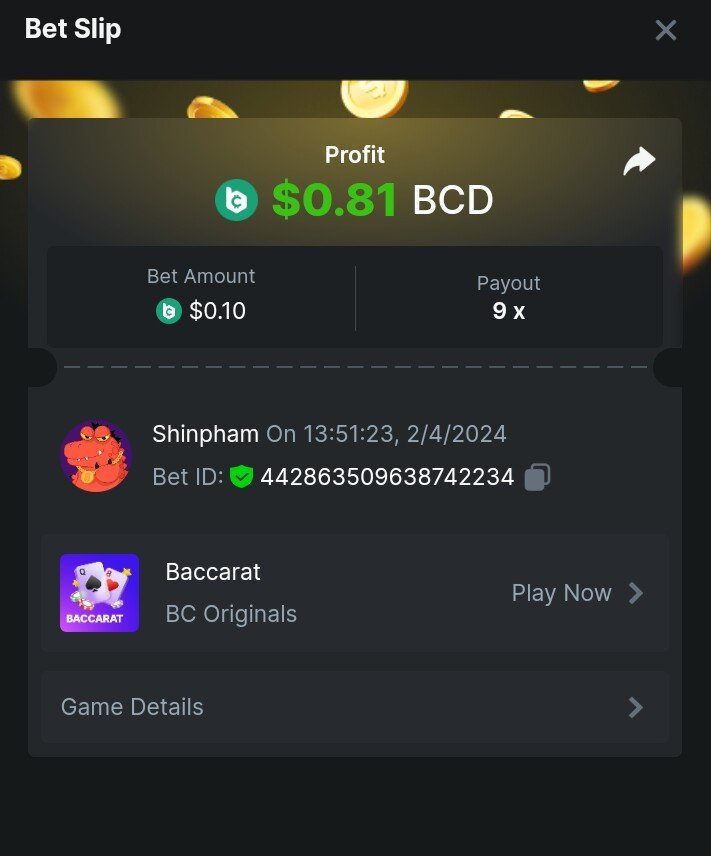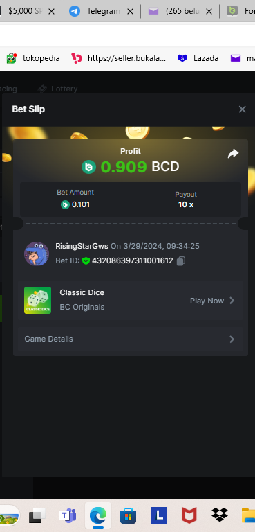 Konichiwa Posted March 28, 2024 Share Posted March 28, 2024 (edited) Easy 1 classicdice https://bcgame.im/#/sd/11VKXOSEPSMGQF 2. Bet id 2386922551982043405 3. https://bcgame.im/#/sd/11VYBGWY1CHFNB 4. Enable 2FA for your BC.Game account + Verify E-Mail & Phone Number : DONE 5. https://bcgame.im/#/sd/11W1HBJSR5JM0B Edited April 4, 2024 by Konichiwa Link to comment Share on other sites More sharing options...