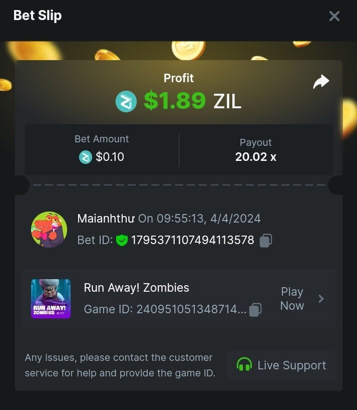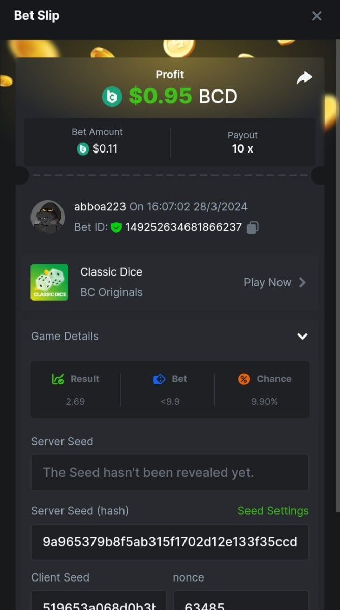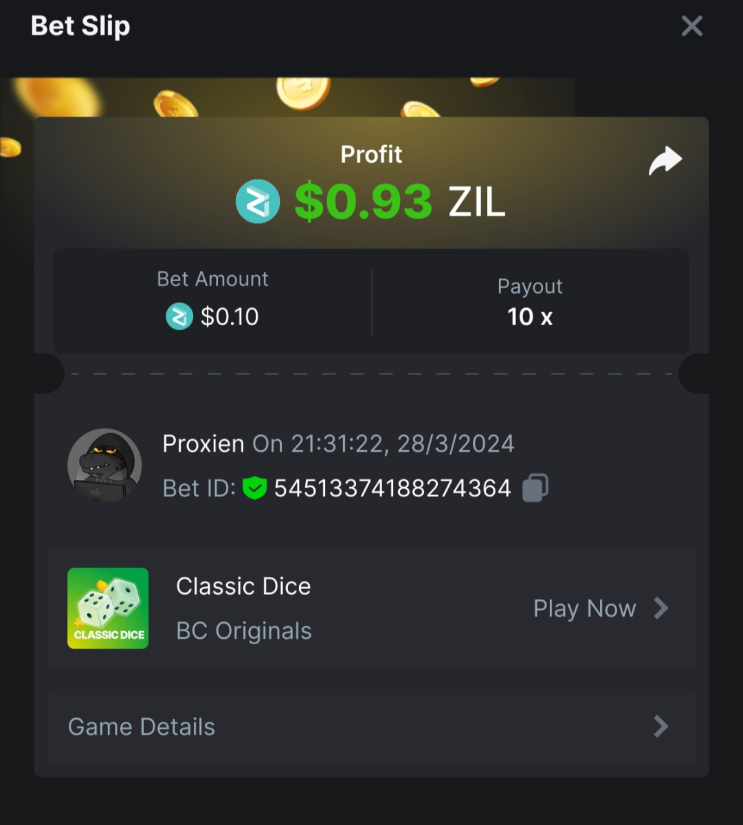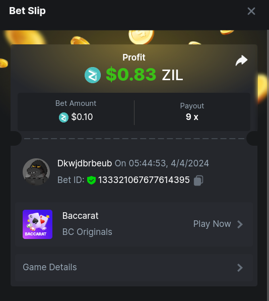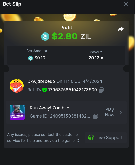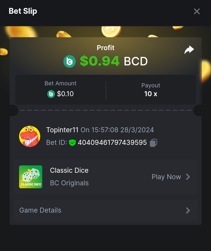 GBC Posted March 28, 2024 Share Posted March 28, 2024 (edited) Classic Dice x10 https://bc.game/#/sd/11VLHRJG9EDT1F Run away Zombies 10x https://bc.game/#/sd/11VLIIWJAYVR4R Baccarat 9x https://bc.game/#/sd/11VLJ1UIYLB03N John Wild 20x https://bc.game/#/sd/11VLJCRRPWKMO7 Twist 15.5x https://bc.game/#/sd/11VLJVMYZJP89N Hello Easter 20X https://bc.game/#/sd/11VLKHQJX5UFX7 Lucky Easter 30X Red Tiger https://bc.game/#/sd/11VLKVPZ7TD0S7 Plinko 76x https://bc.game/#/sd/11VLNHKXB2B94Z Keno 50X https://bc.game/#/sd/11VLZXXWSETGEB Ring of Fortune 99X https://bc.game/#/sd/11VM109IJOCIBR Keno 259x https://bc.game/#/sd/11VMCHB3928KRF Limbo 500x https://bc.game/#/sd/11VMCSY8LKEMYV Roulette Singe 36x https://bc.game/#/sd/11VSMS95Z2L4P7 Wheel 29.7x https://bc.game/#/sd/11VSNGSS4B8GRR Bonus Bunnies 100x https://bc.game/#/sd/11VSP85GLT76DN Easter Heist 90x https://bc.game/#/sd/11VSSCFCBR49R3 Crash 10x https://bc.game/#/sd/11W08C2OE5G03B Black Jack Player 3!!! Statistik do not work correkt https://bc.game/#/sd/11W0B3OVLQ3INF Edited April 3, 2024 by GBC Link to comment Share on other sites More sharing options...