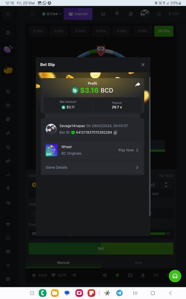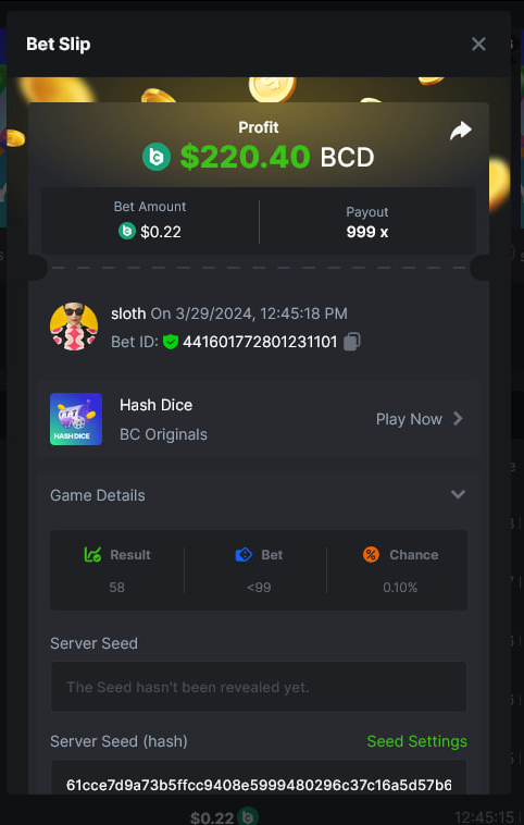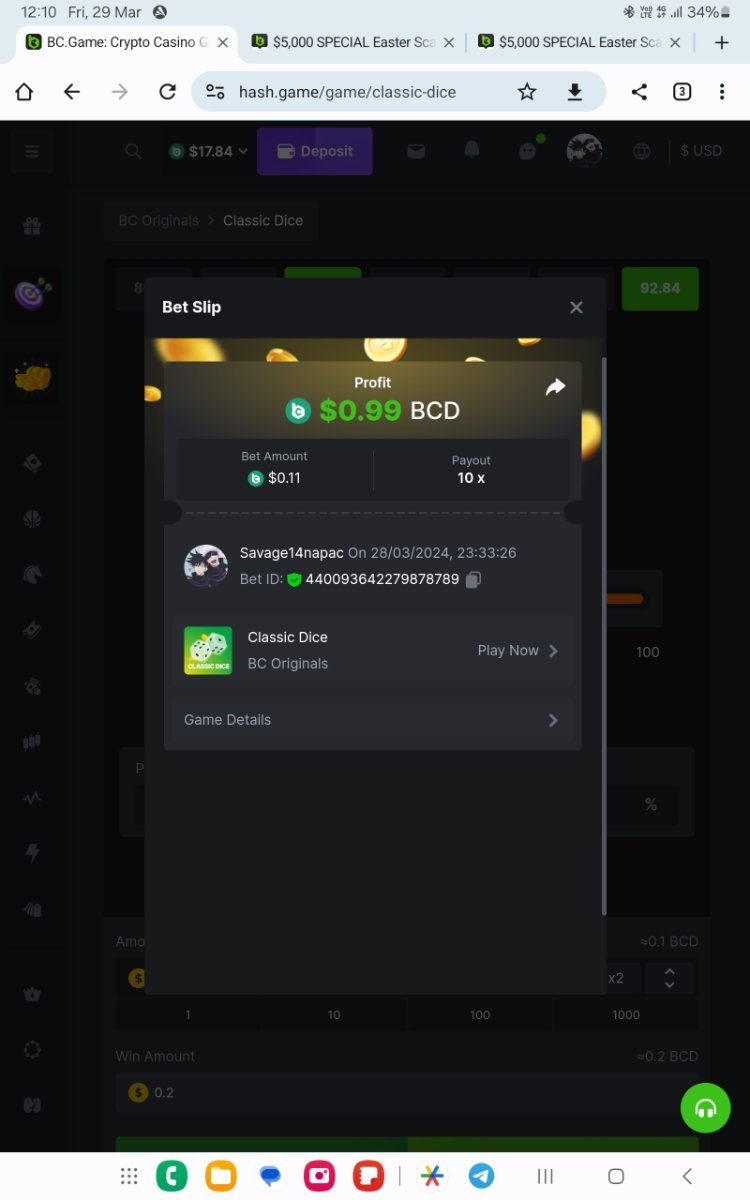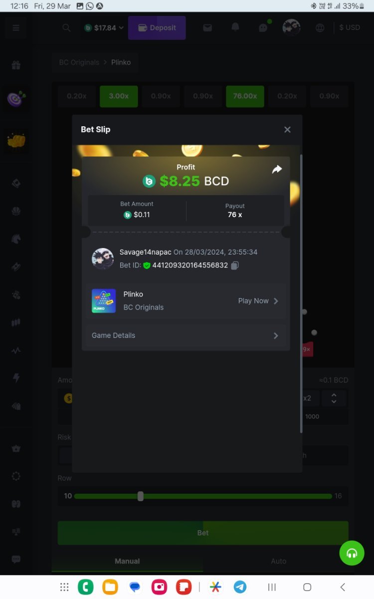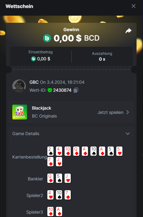 sloth Posted March 28, 2024 Share Posted March 28, 2024 (edited) Total Points 30/30 EASY 1 https://bc.game/#/sd/11VO77GATVCCXF 2 https://bc.game/#/sd/11VO36FOYPH48V 3 https://bc.game/#/sd/11VKFQKFWOAMU7 4 https://bc.game/#/sd/11VKM1H288HRNB 5 https://bc.game/#/sd/11VKG5J0NO13JB 6 https://bc.game/#/sd/11VKLQZGL749P7 7 bet id 2388541117525266478 8 https://bc.game/#/sd/11VKH3DCZZR72Z 9 https://bc.game/#/sd/11VKHRDODKPPY3 10 Both done. MEDIUM 1 https://bc.game/#/sd/11VKEFPNPAVZIZ 2 https://bc.game/#/sd/11VKDDJO482EBN 3 https://bc.game/#/sd/11VKE9CI6RTUE7 4 bet id 2388491552407298304 5 https://bc.game/#/sd/11VJN7D9T73JFR 6 https://bc.game/#/sd/11VKERZ2NQWVER 7 * There is a problem with blackjack bet slips. all of the bets in history shows as 0 value in bet slip.blackjack hand is visible at bet slip game info ss .i also added ss of bill showing the bet with game id. bet is 2 bcd. Thank you https://bc.game/#/sd/11VOQRXMFX4X27 8 https://bc.game/#/sd/11VLQJAKYSW9P7 9 https://bc.game/#/sd/11VLS5NLHTDLWB 10 https://bc.game/#/sd/11VLWDXNBYDIRB HARD 1 https://bc.game/#/sd/11VJO4ADTOF1NJ 2 https://bc.game/#/sd/11VMPUDVWNOGCN 3 https://bc.game/#/sd/11VMKBWDTF65NF 4 https://bc.game/#/sd/11VOIUG63W4GGV 5 https://bc.game/#/sd/11VO9PCVEW7R4B 6 https://bc.game/#/sd/11VOO6VJNW78Y3 7 https://bc.game/#/sd/11VMKUB6AK9HJ7 8 https://bc.game/#/sd/11VODUXB33W0GV 9 https://bc.game/#/sd/11VOH4GG3LZ55Z 10 bet id 2385379590152524000 Edited April 7, 2024 by sloth Link to comment Share on other sites More sharing options...