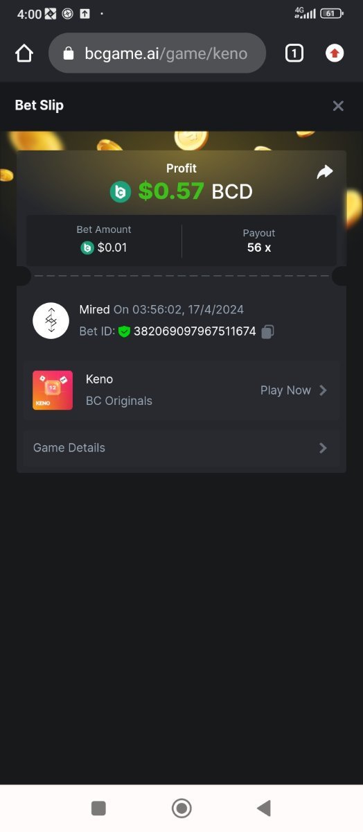 Moderator Giandreas Posted April 16, 2024 Moderator Share Posted April 16, 2024 Read Carefully Before Start To Hunt Forum Daily Challenges #572Hunt : Keno Win the highest pay out Min Payout : 90 Min Level 10️Duration Starting : Now End time : 23.59 UTC Time How to Join? Make screenshot + paste your bet link + UID or Profile link Any coin, with min bet 0.01 USD is allowed (jb/bb/bcl not allowed)Reward Prizes 1st Place.....$7 BCD 2nd Place.....$5 BCD 3rd Place.....$4 BCD 4th Place.....$3 BCD 5th Place.....$2 BCD 🏵 Winners will be announcing next day after Roll Point! 1 Link to comment Share on other sites More sharing options...