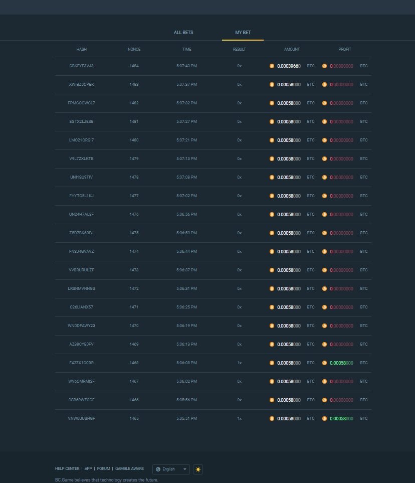 I cant tell what game is that?  You could be betting over 90 on dice and thats why its all losses?