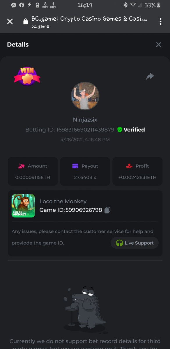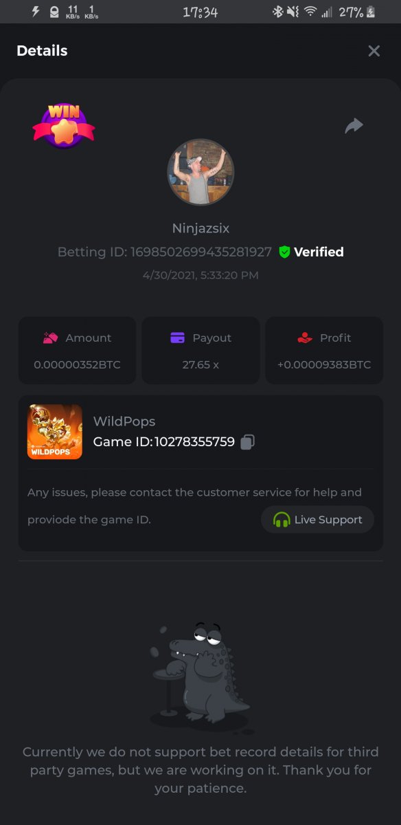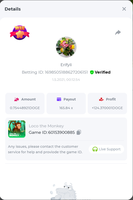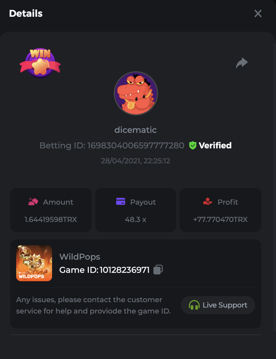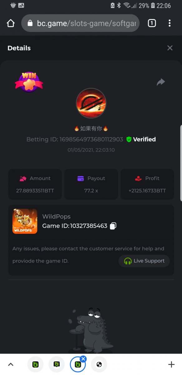 luntik777 Posted May 1, 2021 Share Posted May 1, 2021 my screenshot hidden im write ID in manual mode WildPops Betting ID : 1698452806487523456 Game ID : 10234224763 The Dog House Betting ID : 1698453893684649856 Game ID : 60069720677 Loco the Monkey Betting ID : 1698454418032199296 Game ID : 60070367292 Link to comment Share on other sites More sharing options...