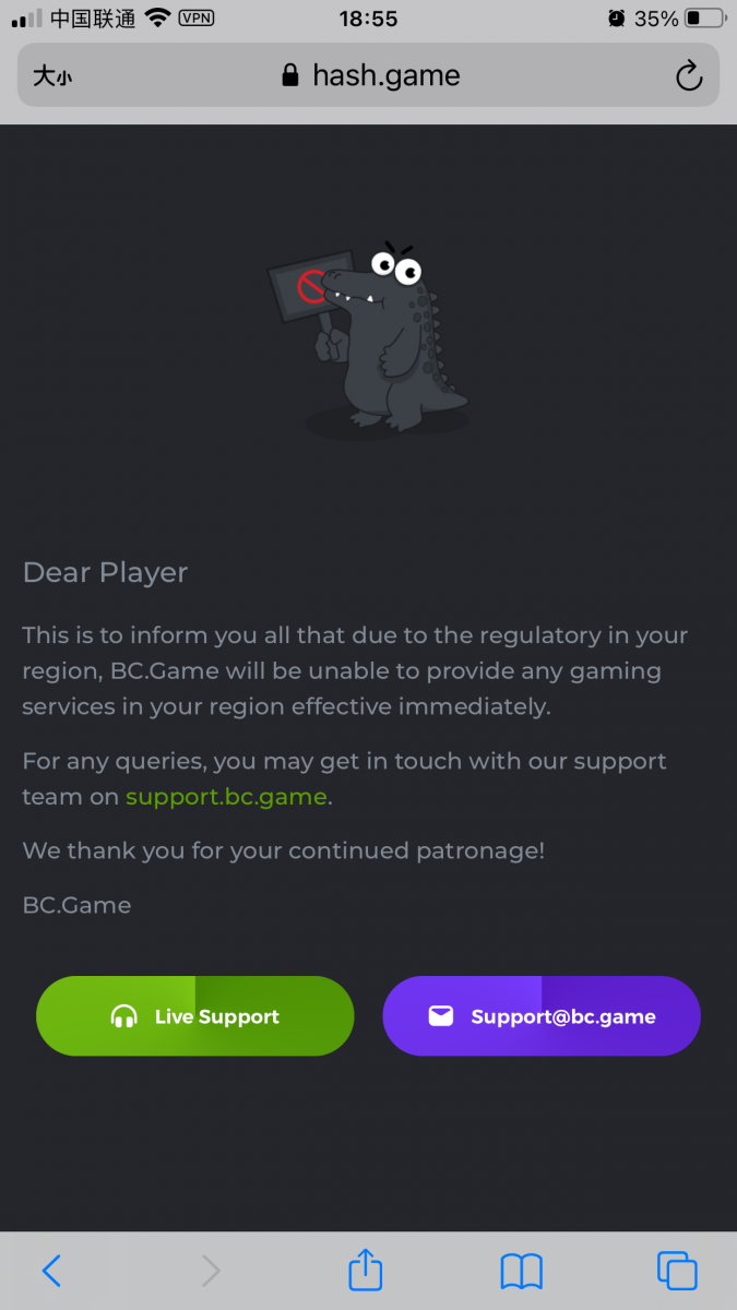 还在玩这个游戏吗,我来自中国,现在已经不能打开bc.game了,我账户里还有许多币我想把它取出来,如果你愿意帮助我,我会回报你的