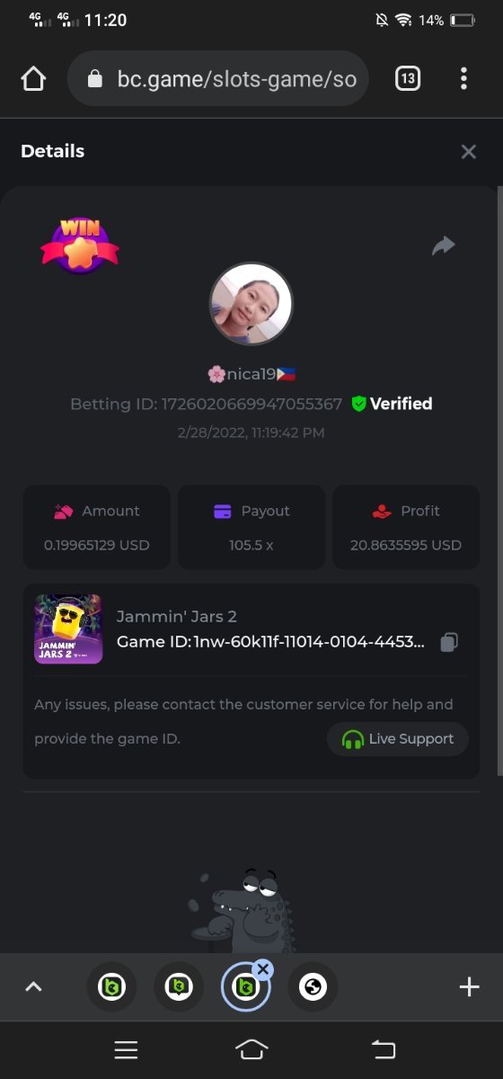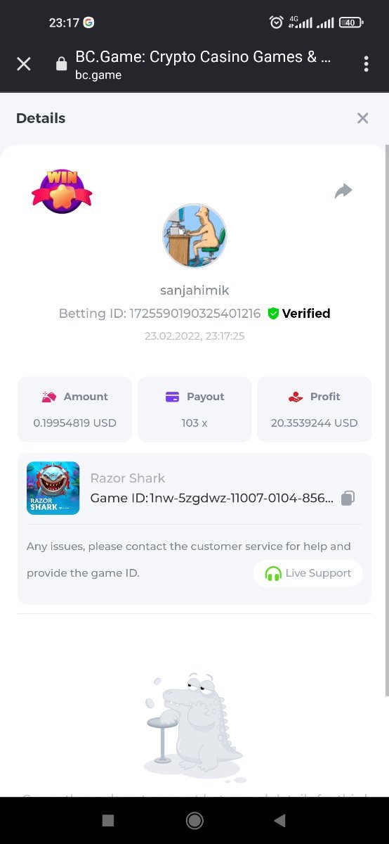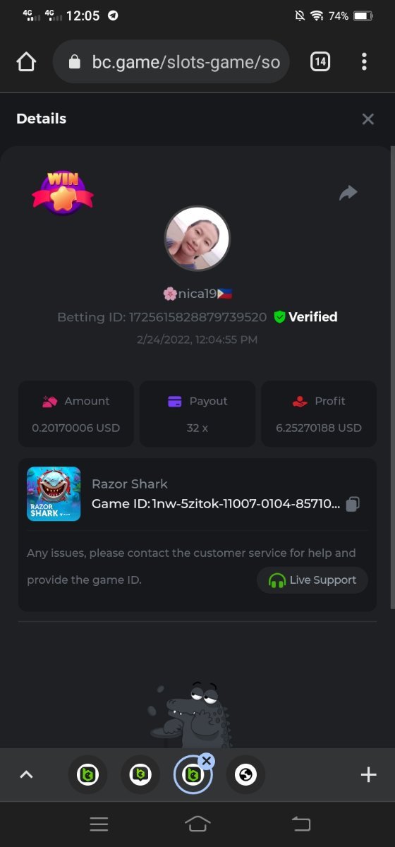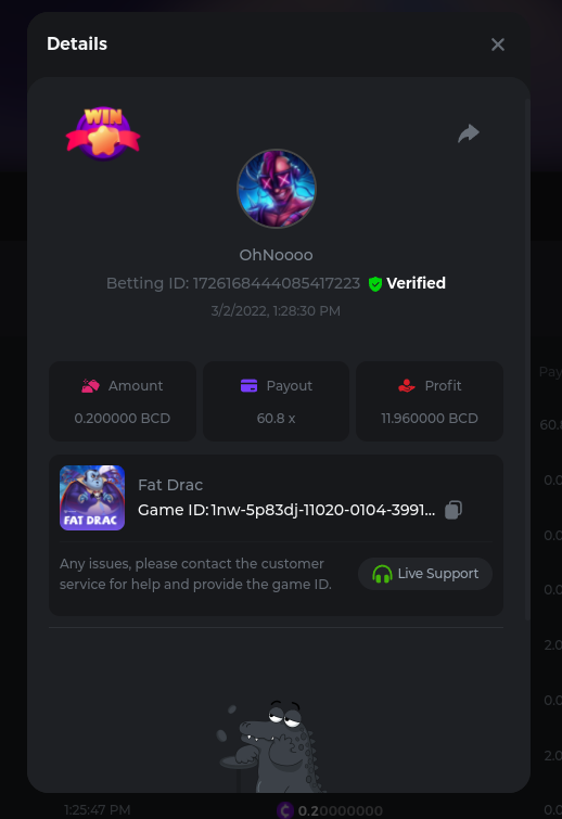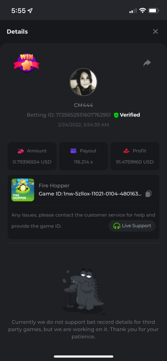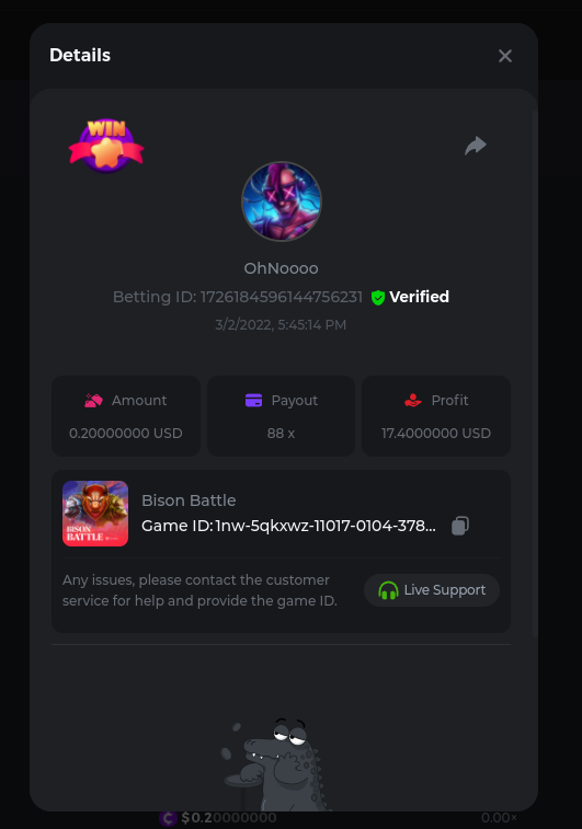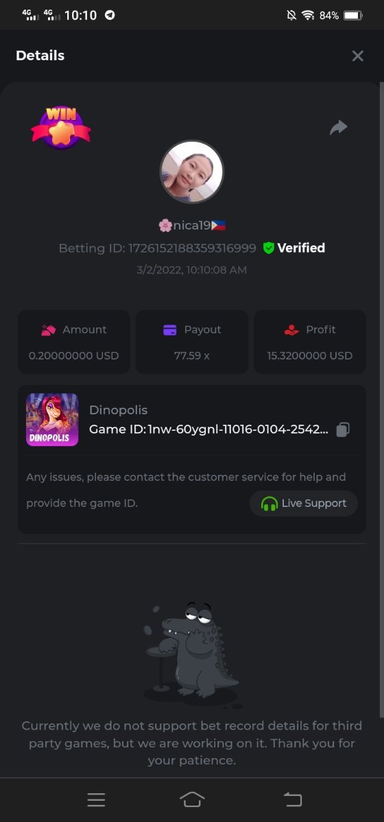 • In the same post, upload a screenshot of your win by clicking the game ID WITH VIEW IN USD mode ENABLED (accessible at the bottom of dropdown menu for your wallet up top, and Submit Reply. Done! This way, we can ensure that your bet indeed met the minimum requirement at the time of placing it: