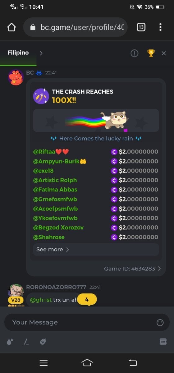 Furthermore, with the BC.Game 3.0 update, of course, there are many new features that are very useful for players, such as the lucky whell spin with prizes that increase with the level of the players, then the rain system which automatically gives rain to lucky players when there are players who benefit. 500$ and over 100x crash result, these features are very useful for us players. but there is one thing in my opinion that should not be changed, namely the BCD dashboard, where it becomes difficult for those of us who have little capital, of course we have to make a minimum bet of 5000$ so that we can claim a locked 10$BCD, if I may suggest, I hope the minimum limit can be reduced from 10BCD to 1 BCD. that's all my advice, hopefully BC.Game will be more successful and of course many players will also be successful.