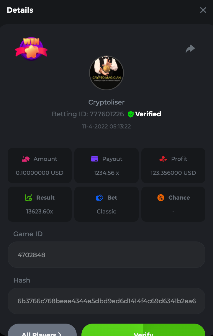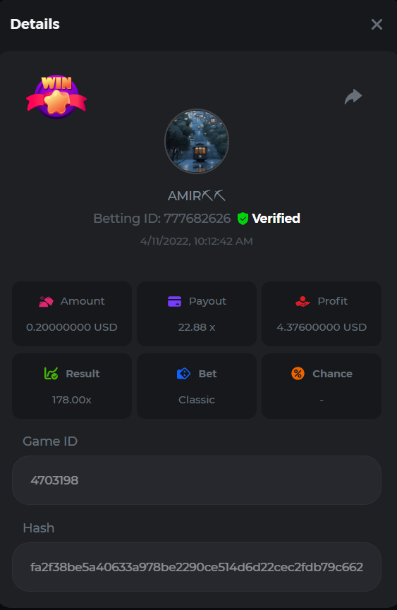 • In the case of a tied multiplier, the player with a higher bet amount will be given the advantage. If there is a tie in the amount and payout, the one who posted or edited his post first will be considered in the Ranking.
