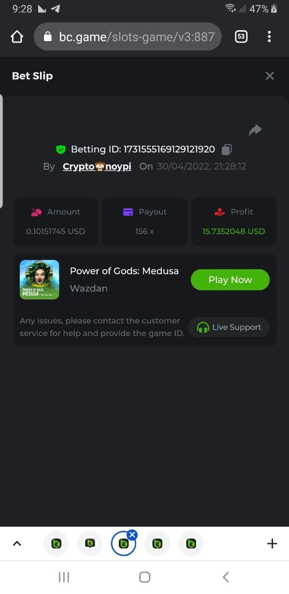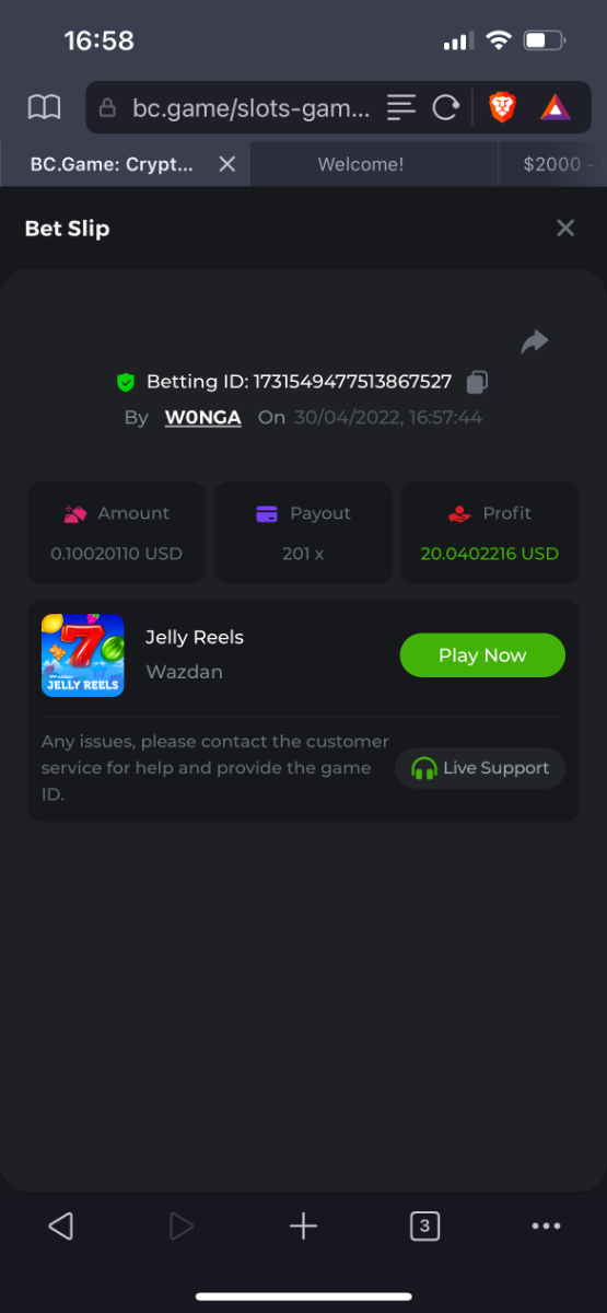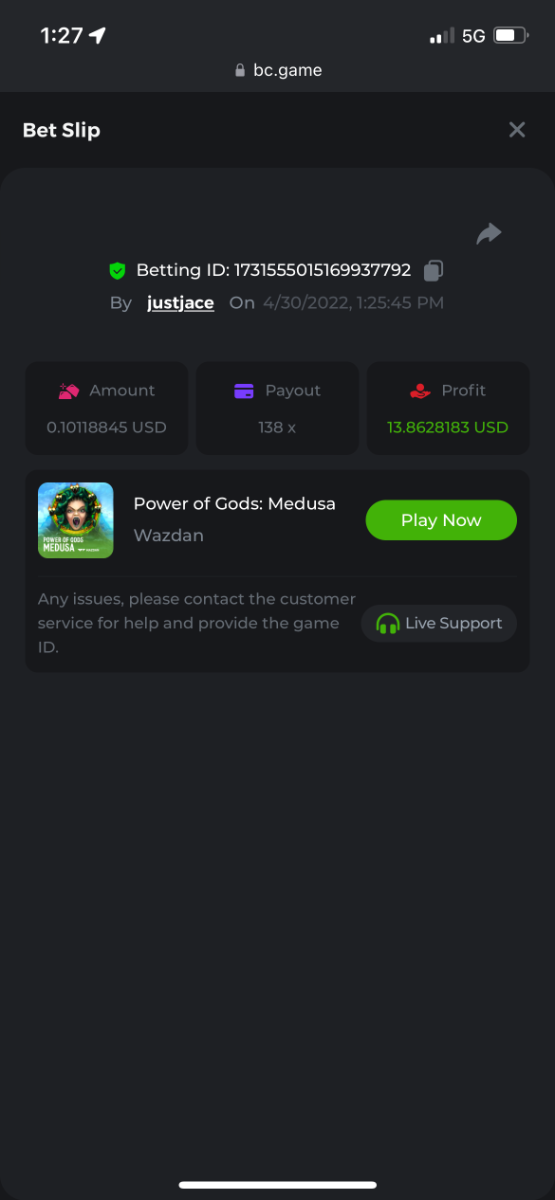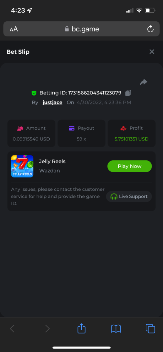 https://bc.game/sd/?sd=10JM8GM5EM4T1V 58x $0.40 bet